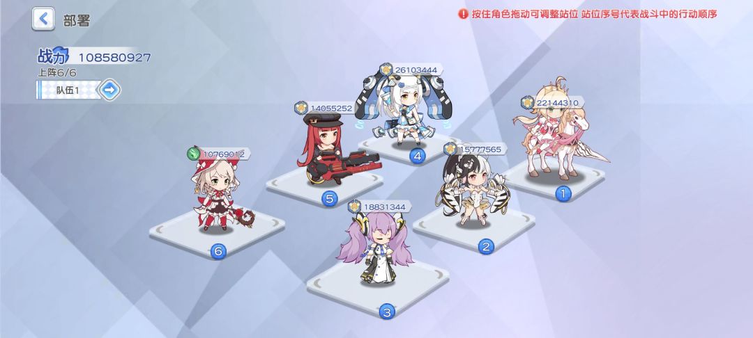 此阵容主要用于过渡使用,砂轮/星野补输出会大大增强游戏前期的体验,之后也可以作为2队主力使用