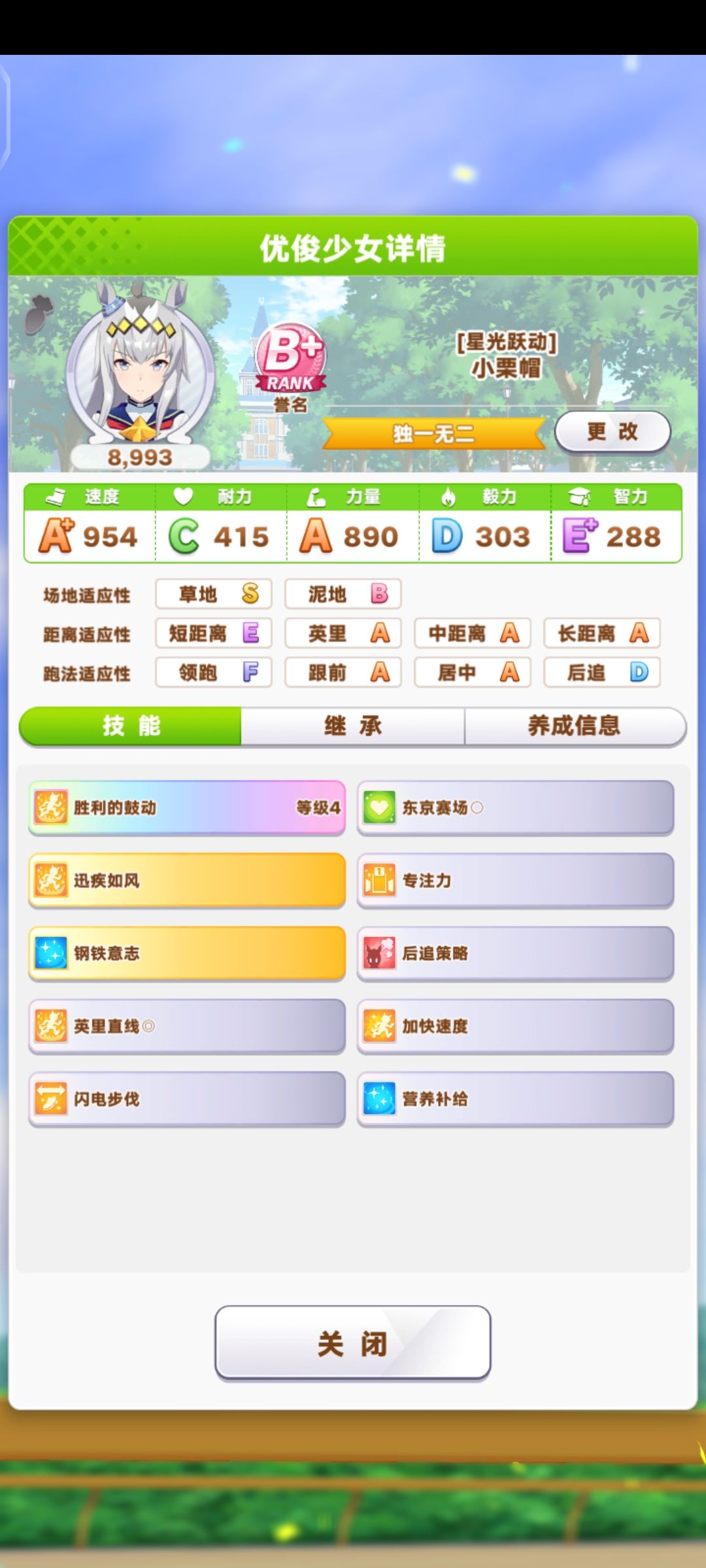 跑完这三场也就培育完了剩下的技能点可以酌情考虑分配
