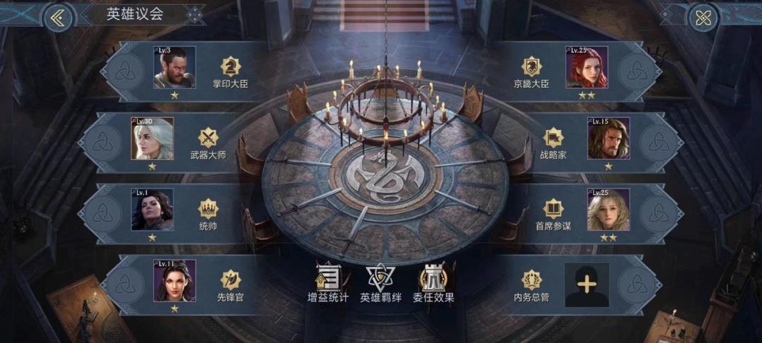 英雄议会是对已有英雄进行职位委任,委任职位不同对应塔防加成以及属性提升也有所不同,这里值得注意的是部分相对应的加成与委任英雄的练度相关联,也就说,对应职位英雄的练度越强,加强的效果更好,因此玩家们可以选择高练度的角色进行委任。此外,连携名单中任意两位英雄被同时任命会触发羁绊,同时生成羁绊属性加成。