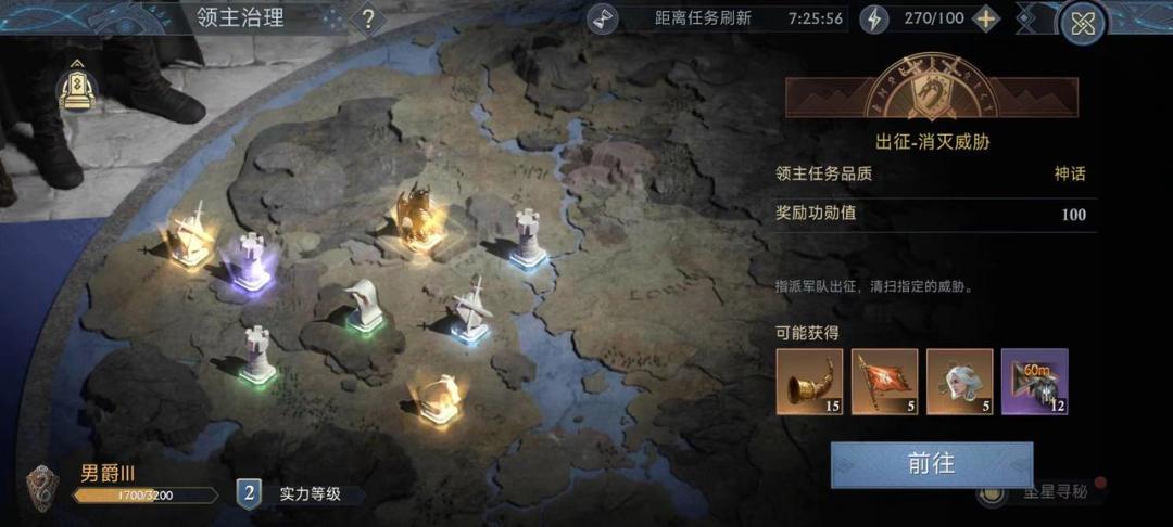 当玩家爵位越高时,刷出高品质领主任务几率也越大。随着玩家实力等级的提高,领主任务的难度也会逐步增加。领主任务每八小时进行一次重置,所以一定要计算好时间,才能多做几个领主任务。而完成领主任务获得的功勋值可以用来提升领主爵位,领主爵位越高对应的奖励也越为丰富。
