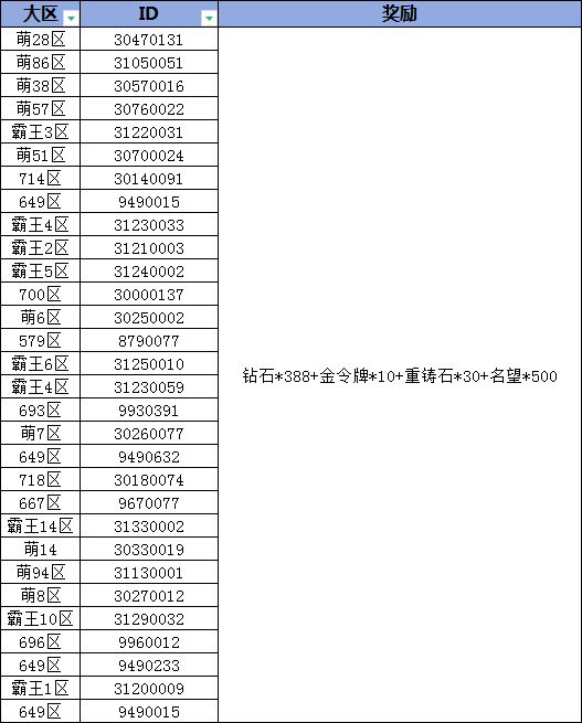 (钻石*388+金令牌*10+重铸石*30+名望*500)*30份。