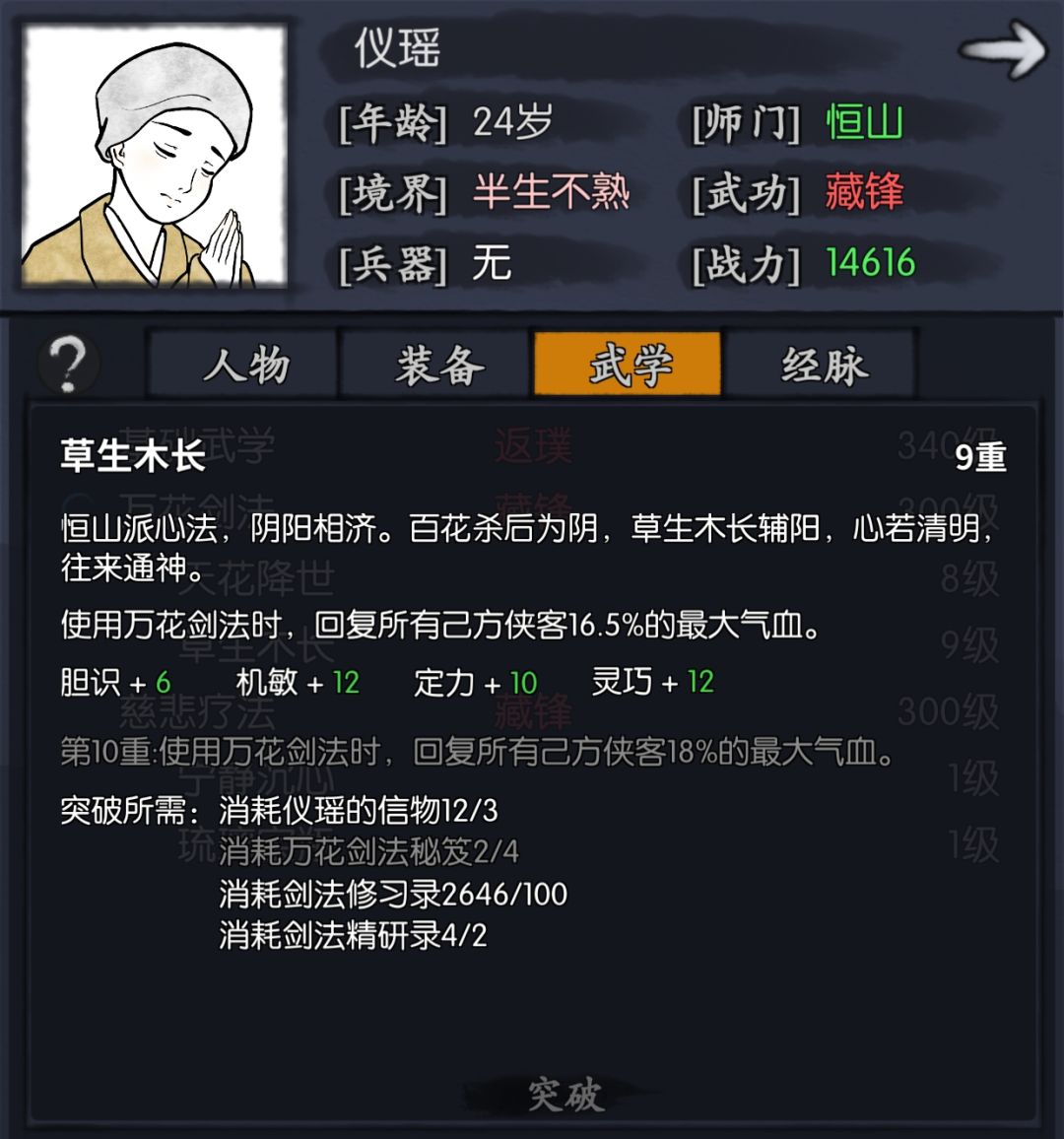 至少需求:5x长春决 ,28x信物,约270x剑修习录,6x剑精研录