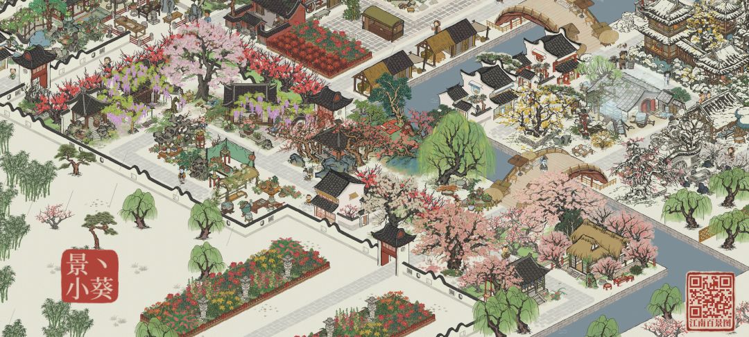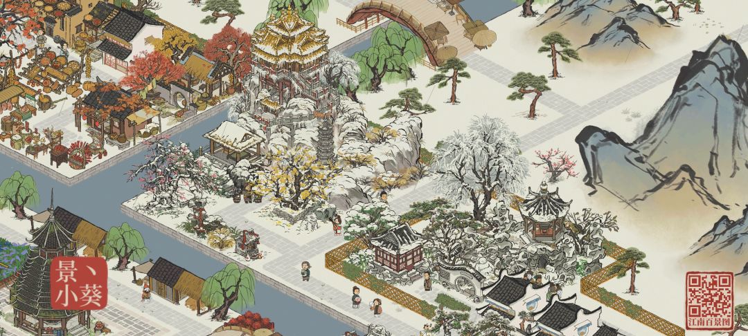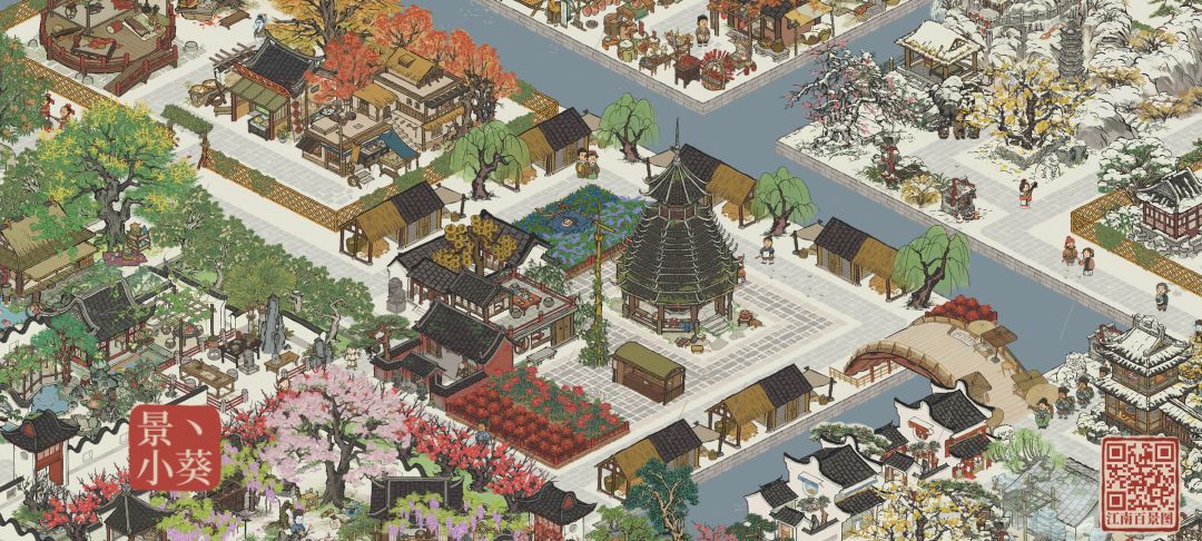 江宁县地很平整,正好可以把严大人四季限定建筑按季节组合在同一个城里,多余会加一些相衬的其他建筑,截图时候正好冬季园里有一对居民结婚了,使得冬季园多了一抹靓丽的红色,可喜可贺!