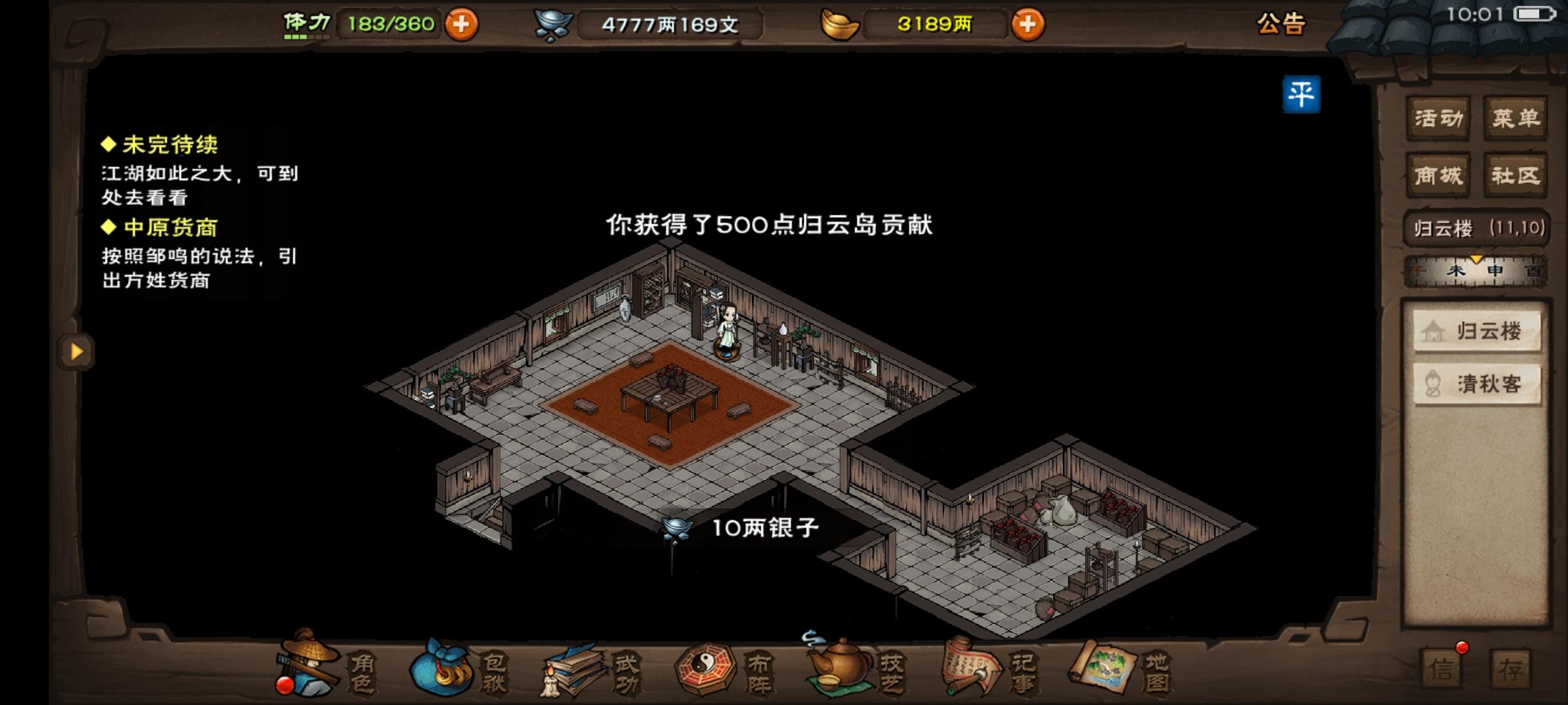 奖励10两银子和500贡献