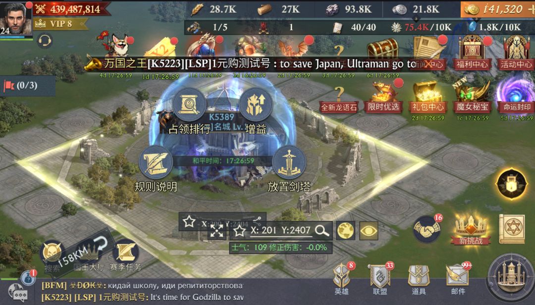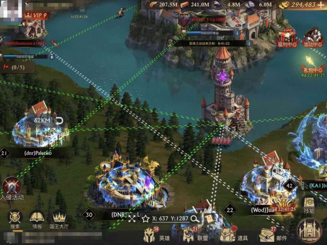 占塔策略:建议由高堡成员开集结优先占塔,其他成员再进行支援。王战实际上更多的是围绕四个圣塔进行攻防交战,拿下4个塔再打王座会更加稳妥。