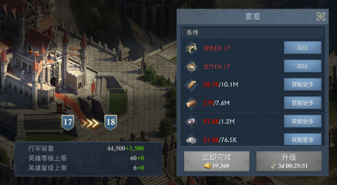 10堡指的是要塞等级。要塞升级要涉及方方面面,主要与资源获取有关。要塞等级提升后,可大幅提升行军容量,及保证其他建筑的等级(比如更高级的兵营、更好的医院、更高集结容量)。大家可以将要塞等级作为长期运营的思路,要塞等级越高,即代表玩家的硬实力越强。
