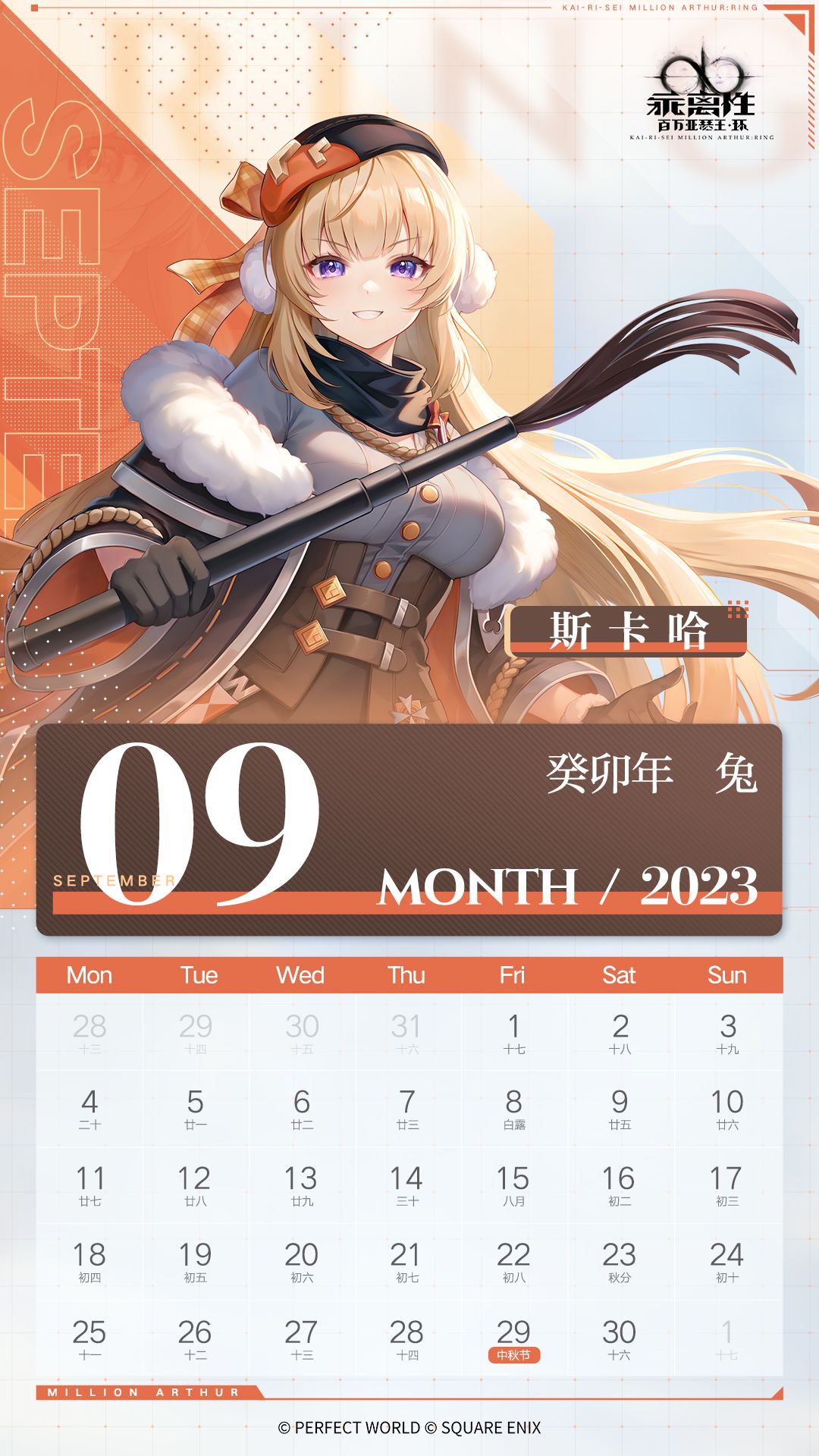 亲爱的亚瑟大人,请收下盒子送上的九月月历壁纸~