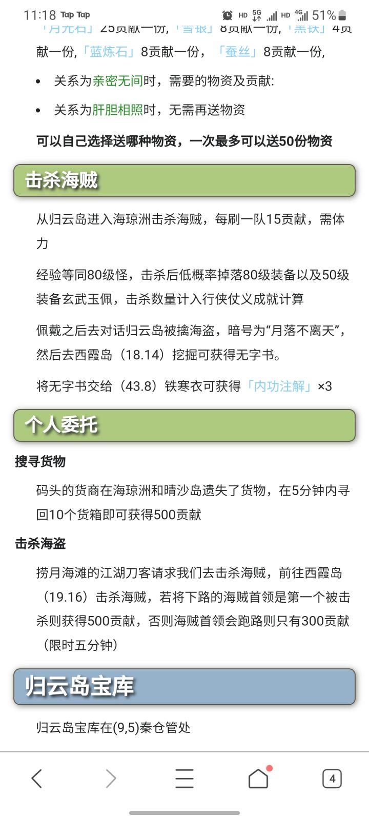归云岛有个击杀海贼的任务,后续可以找铁寒衣拿3个内功注解。