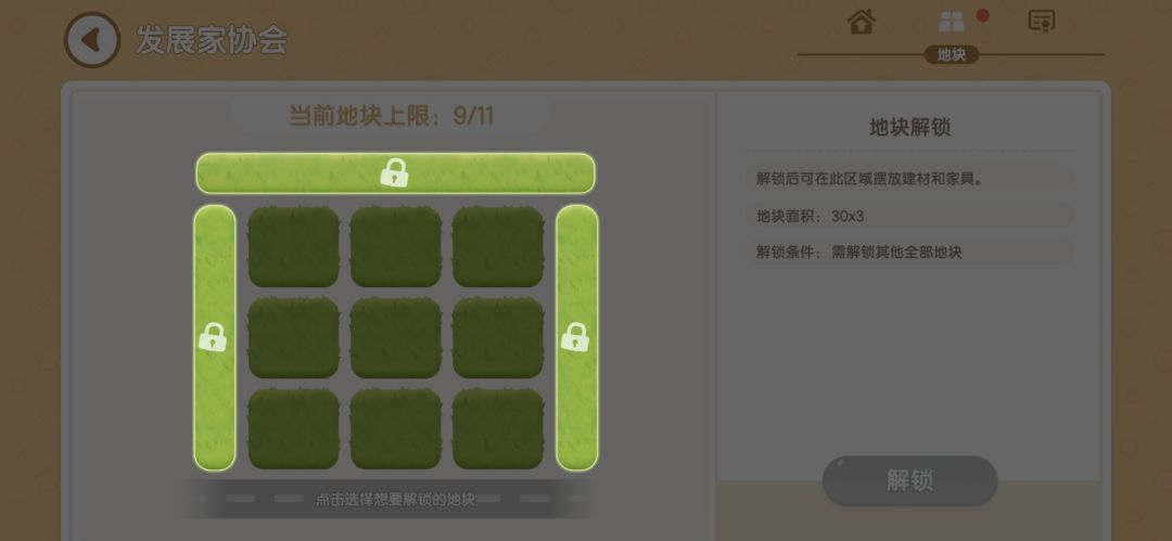 在9月中旬,家园可解锁的地块将会变少,家园中30x3的三个地块将不可解锁,也就是下图中的三个长方形地块。