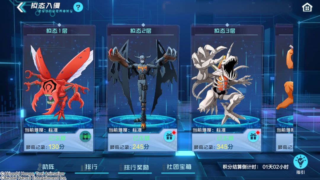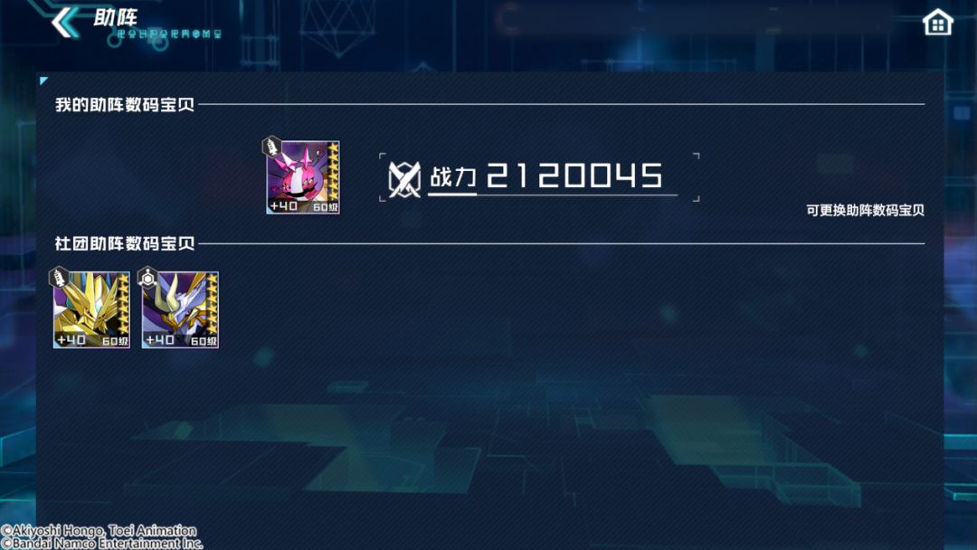 就算您的阵容不够强力,或者可出战的数码宝贝数量不够,也不用担心!策划大大贴心为您准备了助阵系统,社团内成员可以使用公共数码宝贝,互相租借,轻松通关!不过要注意的是,助阵有次数限制,每期总共只能借用三个助阵数码宝贝哦。