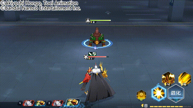 攻击敌方全体,提升我方防御并赋予反击,土元素数码宝贝有几率赋予磁化标记