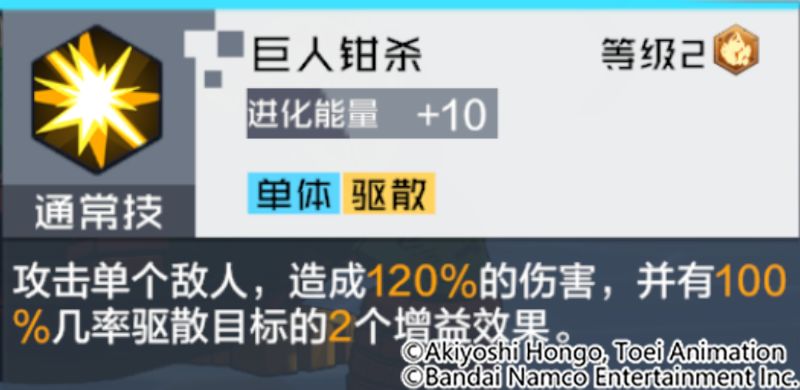 通常技:巨人钳杀技能解析:攻击单个目标的通常技,有几率驱散目标的增益状态。