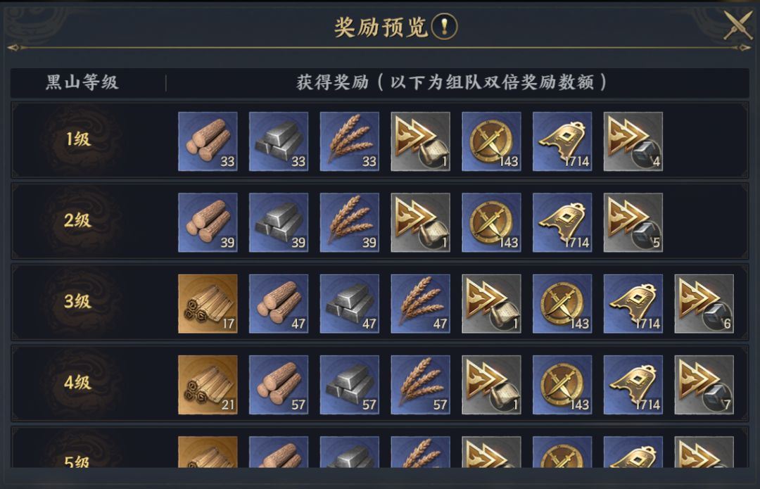 当然,讨伐成功黑山军也能够获得丰厚的奖励,奖励中包含资源、批文以及丰厚的联盟币等多个丰富奖励,资源可用于升级建筑,联盟币可在联盟商店购买加速、资源道具等,批文是升级军情院的重要材料,日常任务中【讨伐黑山军】是批文非常重要的来源之一,军情院能够给部曲带来非常大的加成,因此提升部曲实力攻打高级黑山军获得更多的批文是非常有必要的!