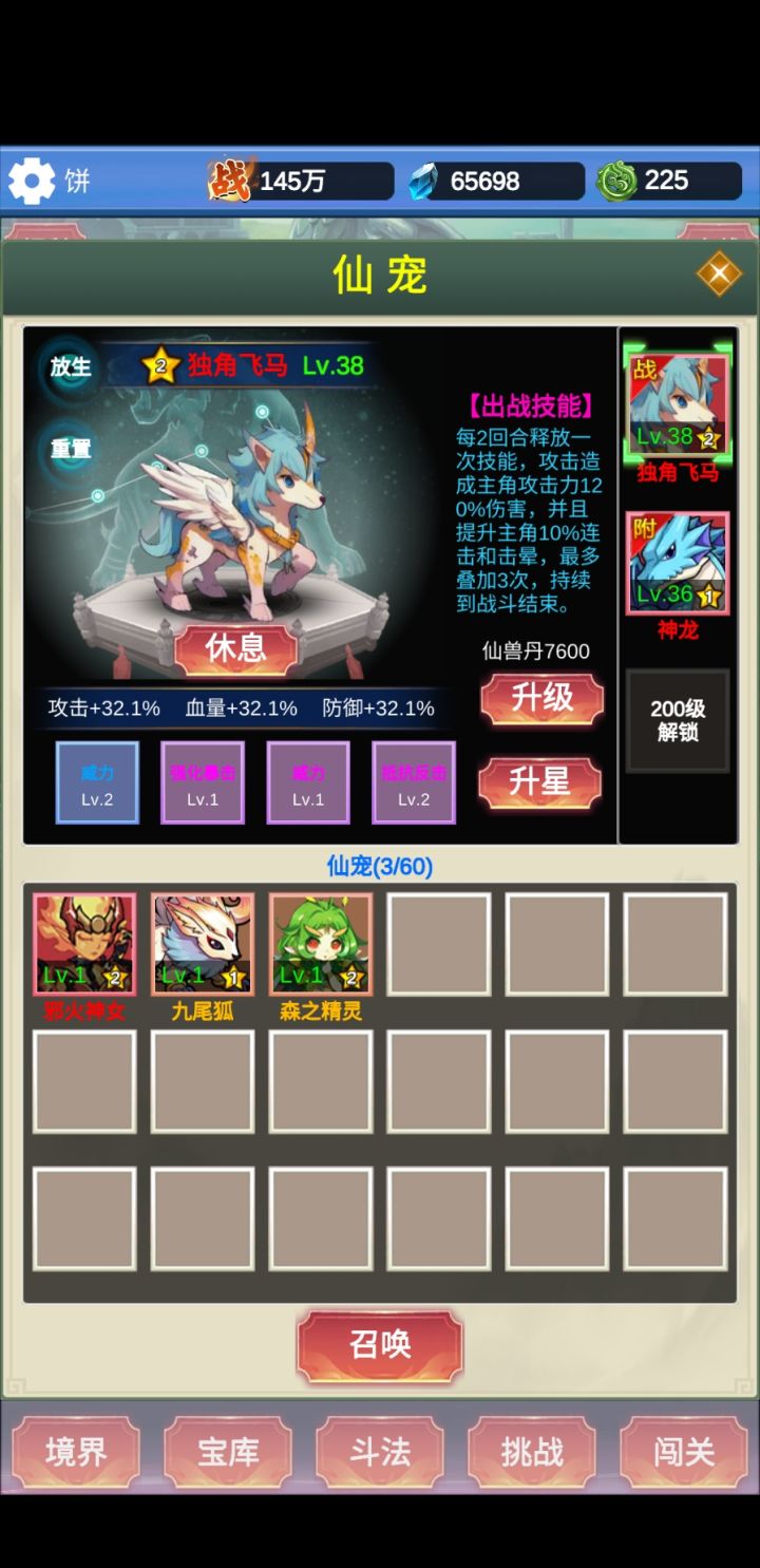 宠物选择,一共三个红宠,选独角兽出战。