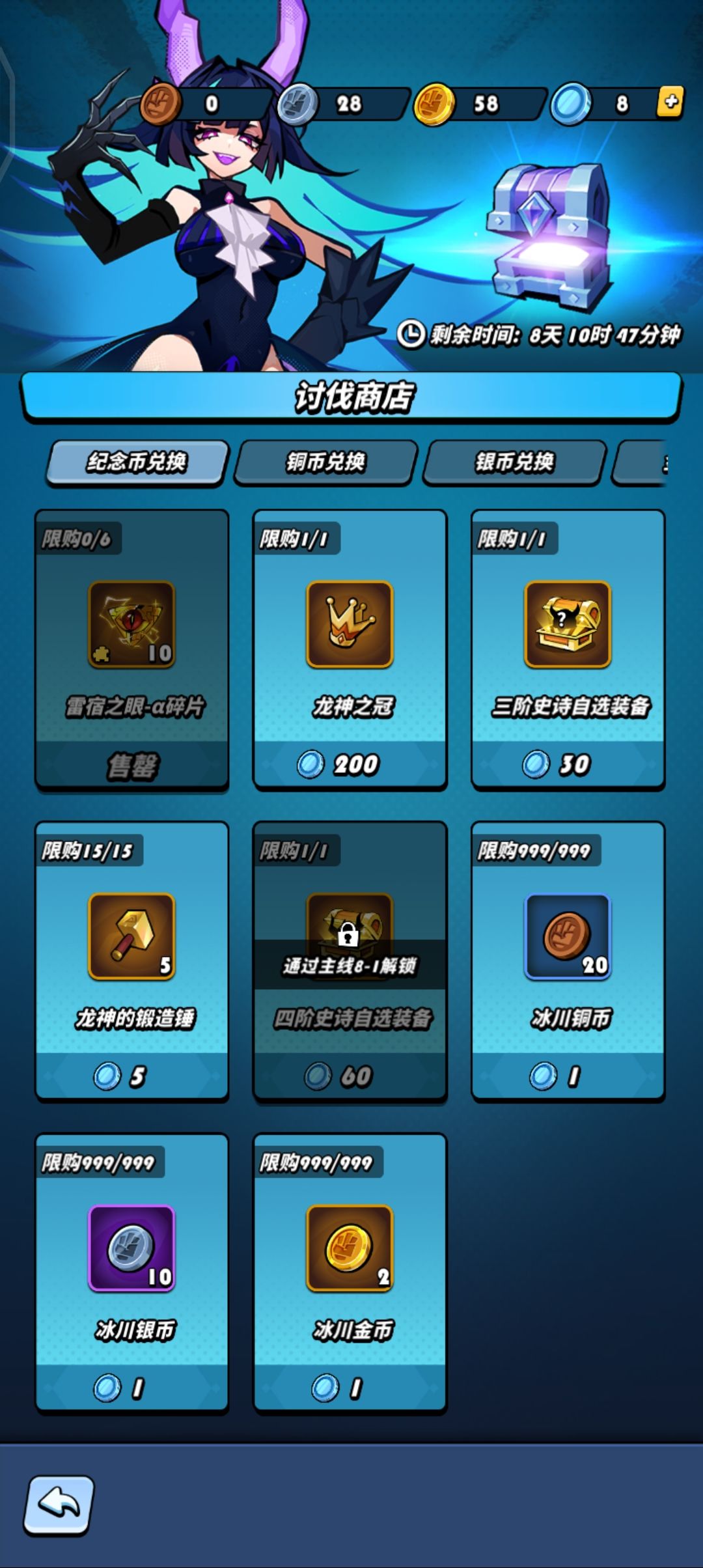 4.新出的首领讨伐活动,在组队条件下可以不用门票,所以可以无限打,且有队友更轻松,如果像我一分不充的话,限定币只够换个托尔的宝物,其他的币,只要够肝,都可以清空商城。