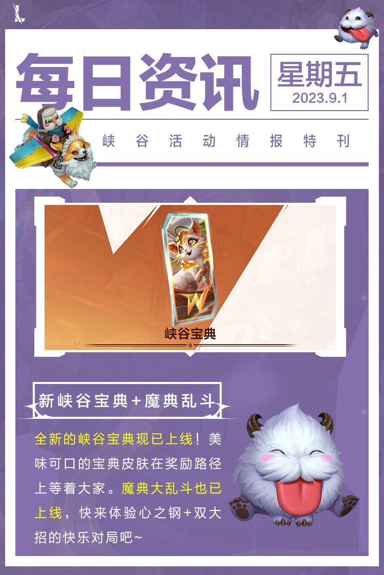 任务减负、奖励升级!新峡谷宝典上线,来魔典大乱斗体验双大招+心之钢的快乐对局~