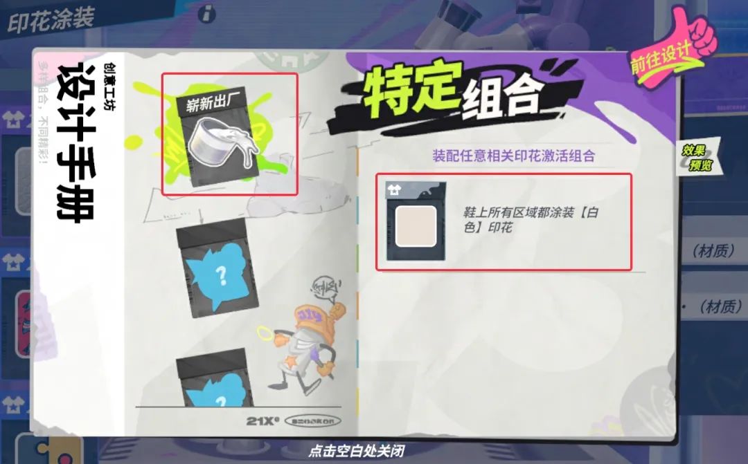 当街球手们获得第一双球鞋,进入球鞋工坊触发引导,就会默认解锁第一个印花组合信息,按照提示的激活方式就可以获得组合的特效外观啦~
