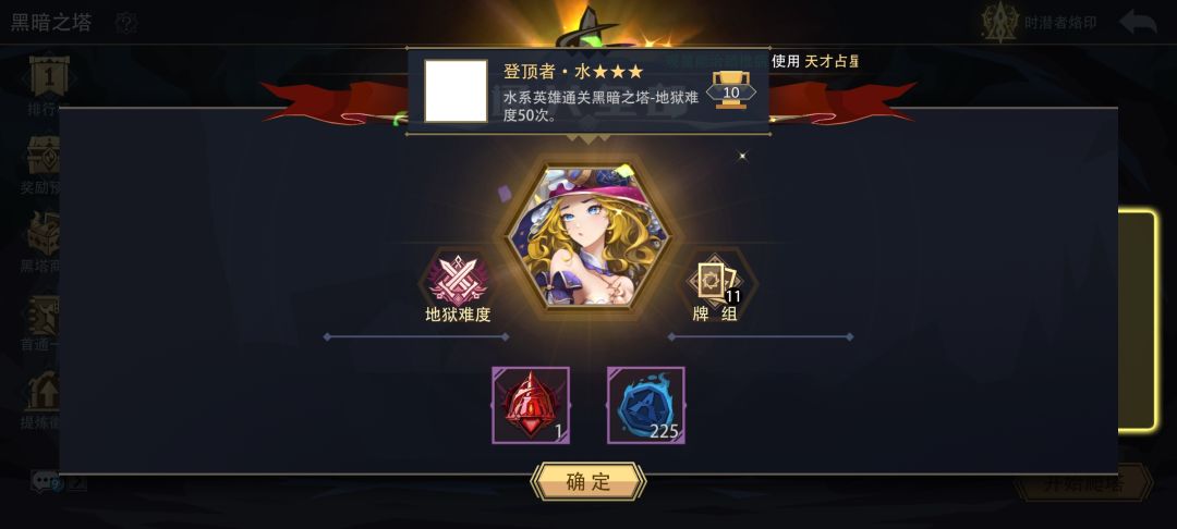 用天才占星师爬塔,主打一个过关速度快,卡组易成型,通关概率高,作为高贵的特殊胜利,除了某几个极其克制的怪没有任何对手。