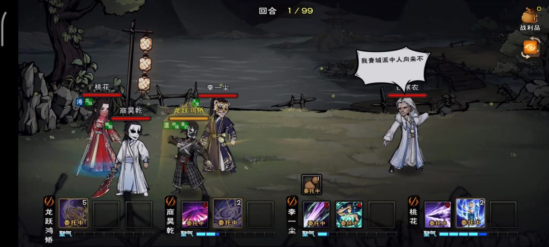 之后会进入战斗,对方很菜,容易打,打完清秋客就跑过来捡漏,然后需要主角找出内奸