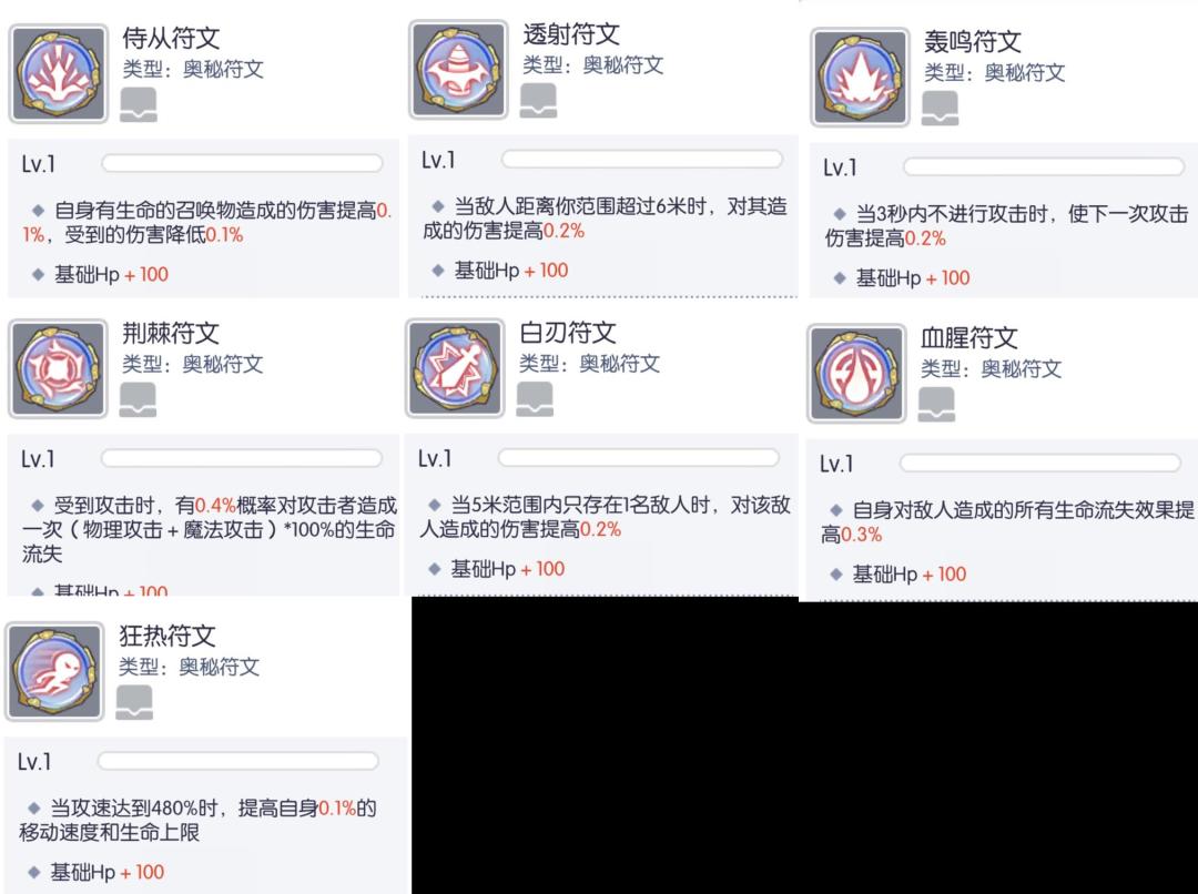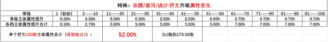 综上,以上内容若无大误,则各奥秘符文100级数据大抵如下:(证毕:不仅是推测,而是找相应符文验证过了)