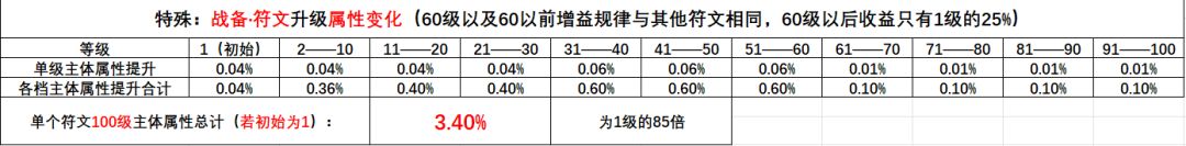 现在战备·符文满足1级/50级/100级=1/60/175的升级增幅规律,与大部分符文类似。