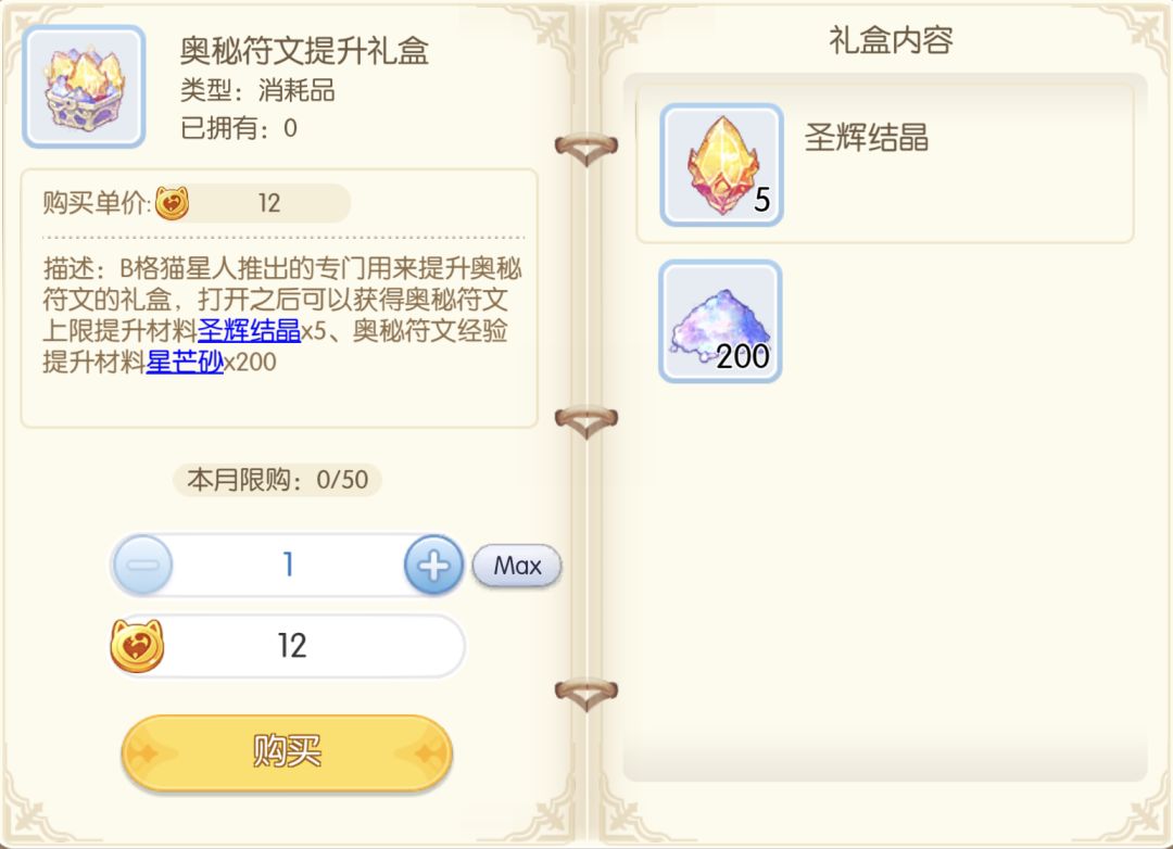 另外,不同难度等级的副本奖励主要差距在于另外两个与奥秘符文有关的新材料奖励数量不同,越难,即奖励多。(新材料为:圣辉结晶-奥秘符文上限提升消耗材料;星芒砂-奥秘符文等级升级消耗材料)
