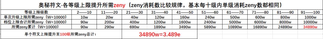 每一级上限提升,都需要消耗一定zeny,基本以每10级为一档,每档内每级提升上限的zeny消耗相同。