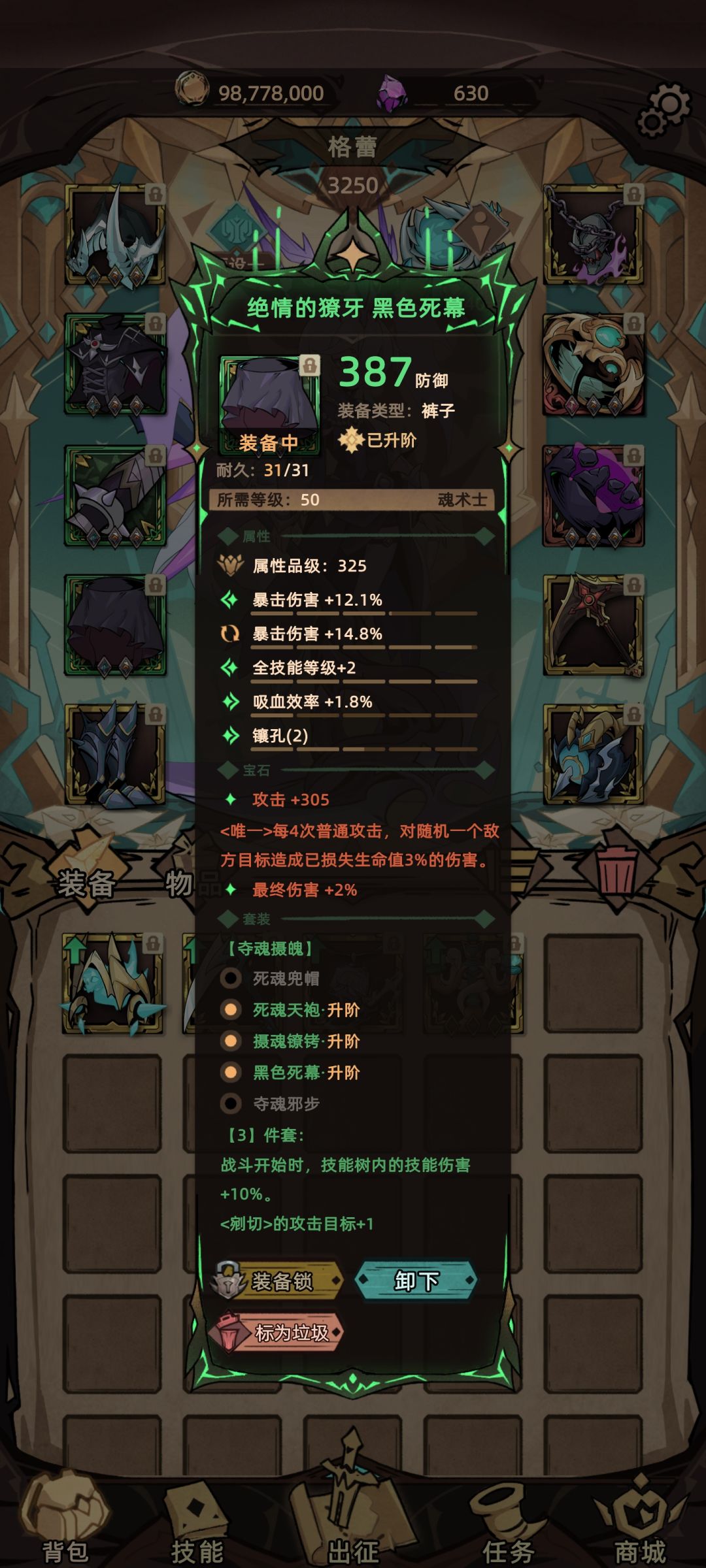 又因为此套装备与我发的死神套装高度统一 可以结合那套攻略看