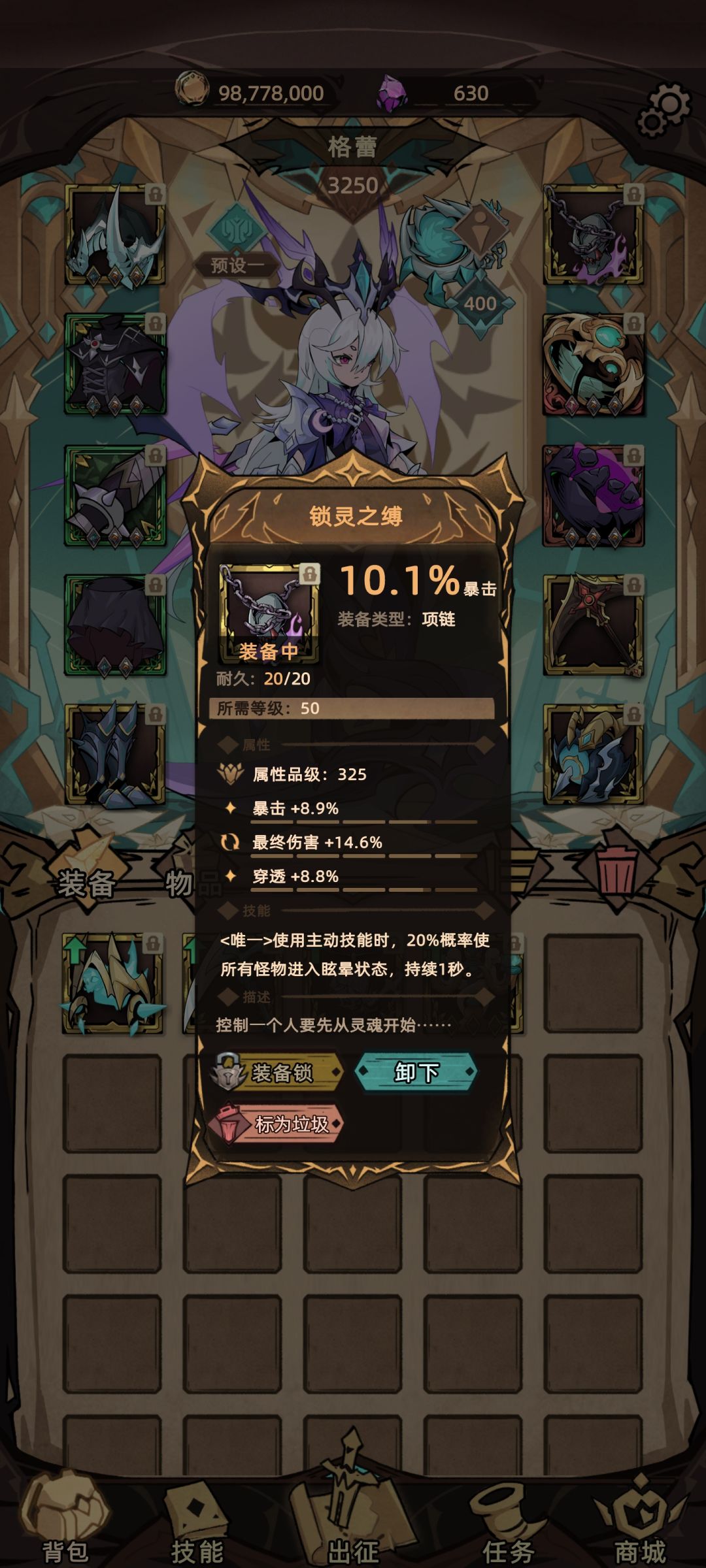 虽然塔很多拥有眩晕免疫 但是万一晕了也能多一点容错率 而且此套装备只需要终伤增伤
