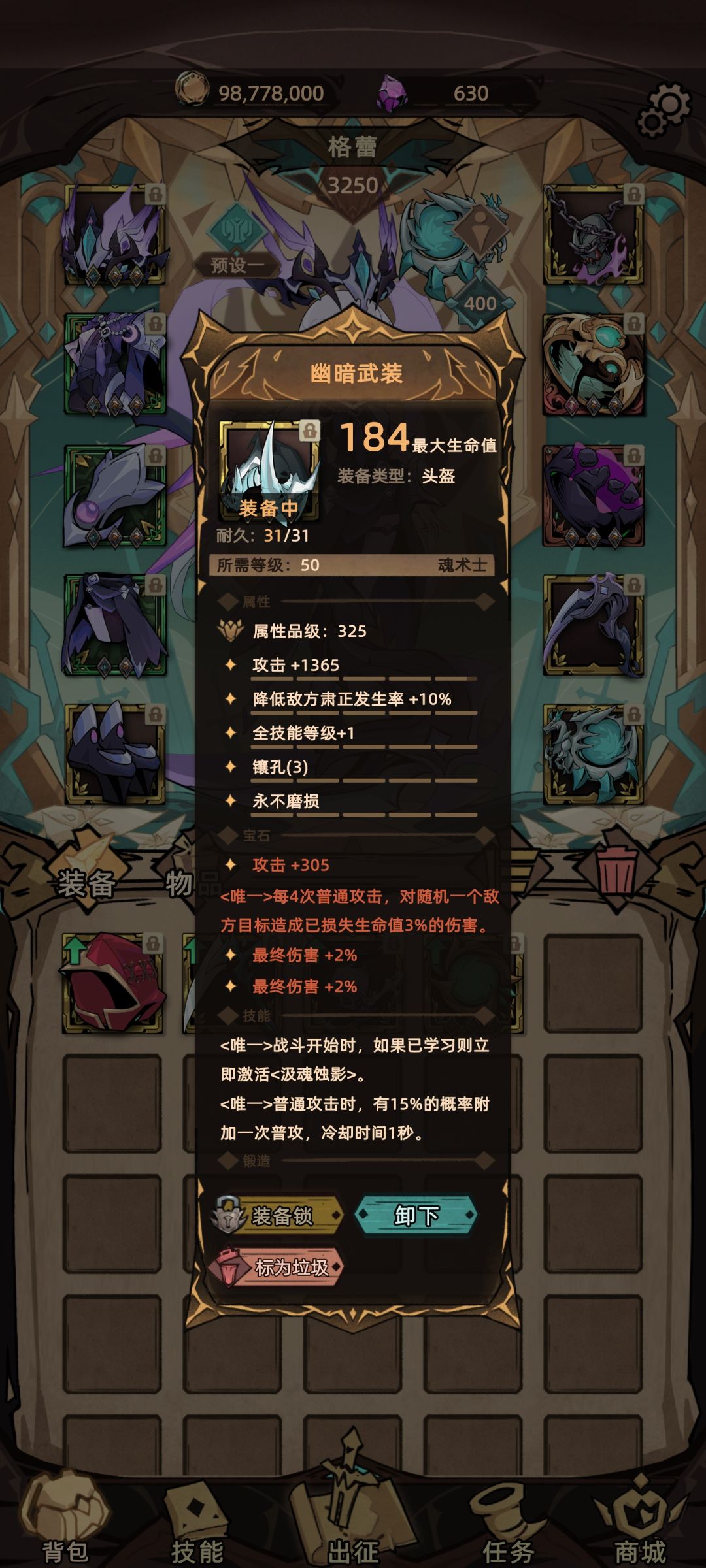幽暗组装头 装备技能非常强大并且有三孔 还增加全技能与肃正
