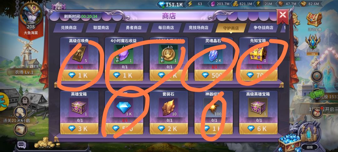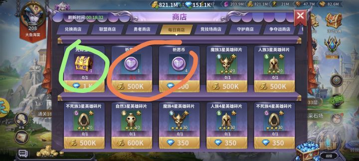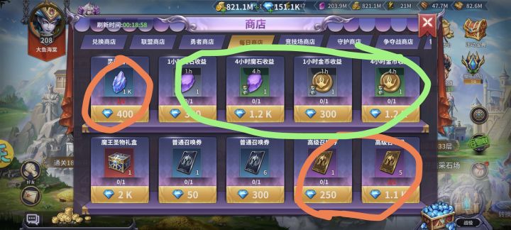 关于每日商店与守护商店该买些啥,以下几张图我圈了下,橙色必买,绿色看自身钻石情况。消费很爽,但不要耽误自身升级守护等级哦。本人微氪玩家,以上为自身理解,不喜勿喷,欢迎各位评论区留下自己的见解。