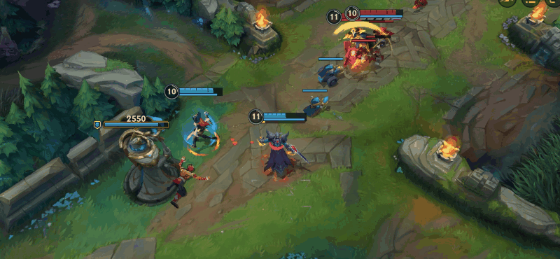 由于技能距离较短,弗拉基米尔在对线期缺乏有效的消耗手段。因此我们可以利用技能距离优势,在弗拉基米尔技能范围外对其进行消耗。