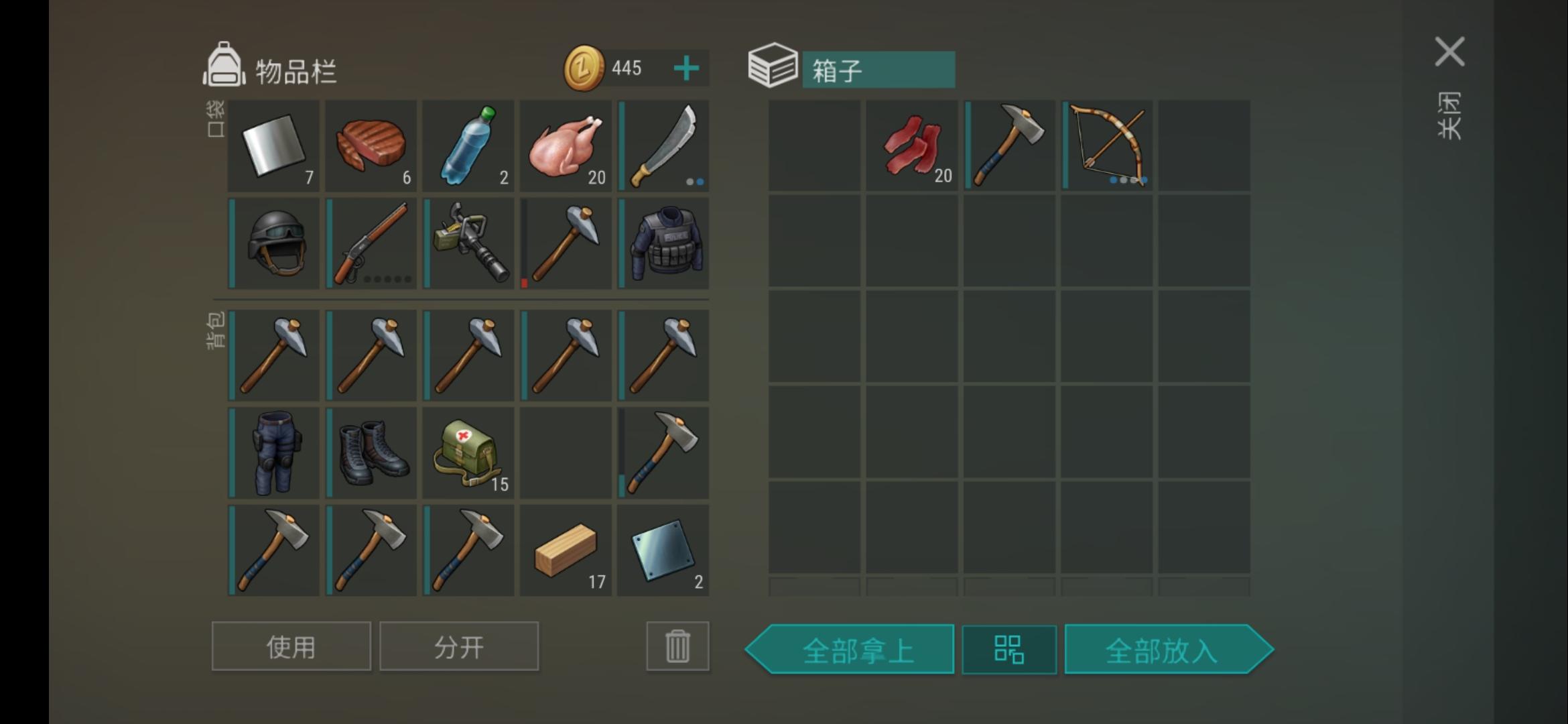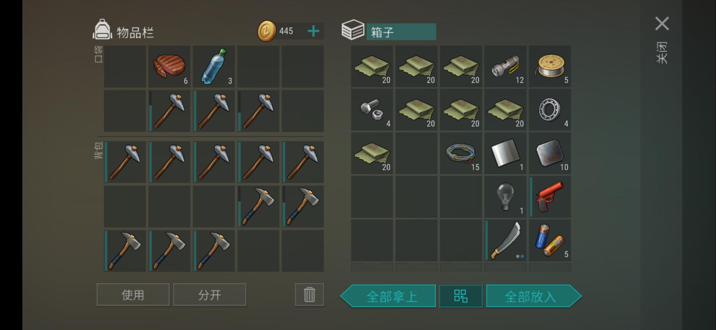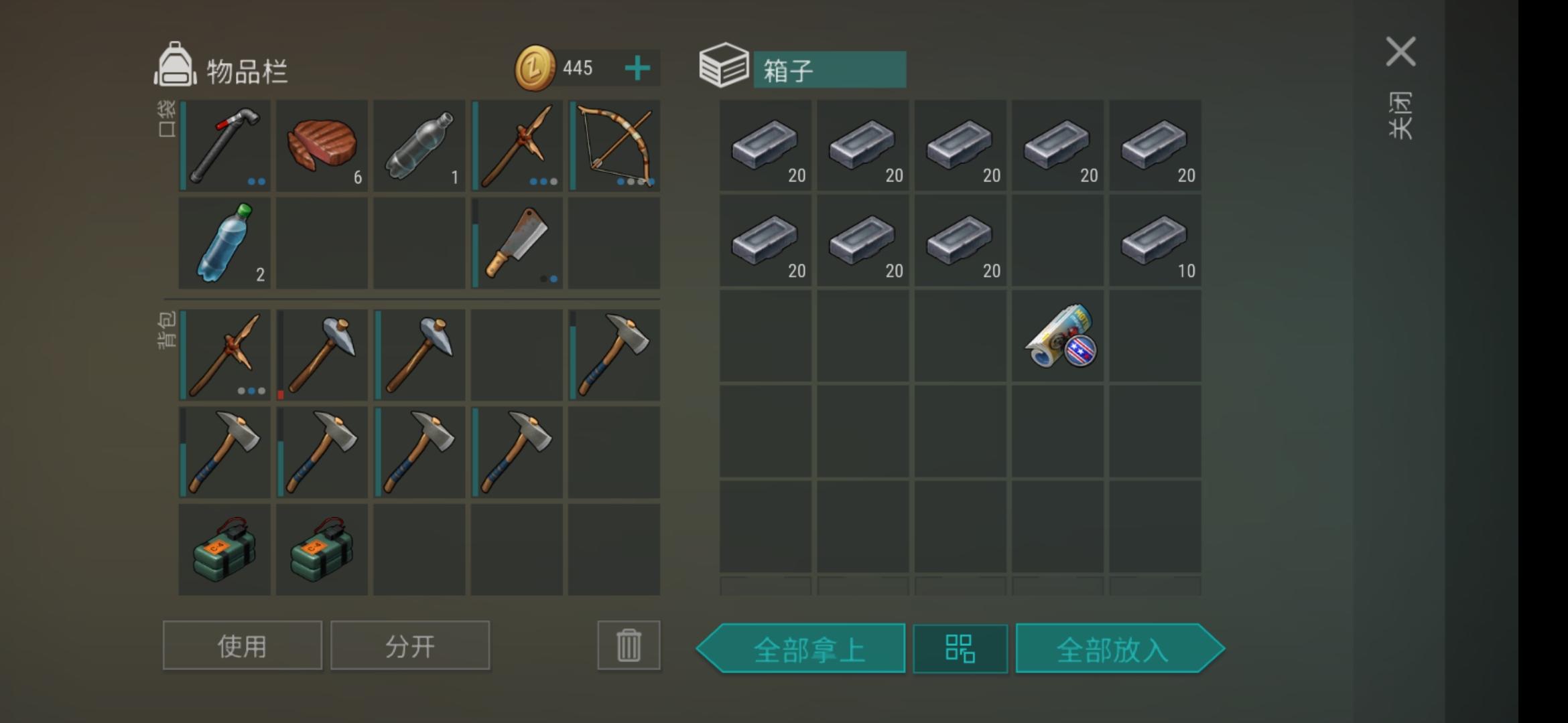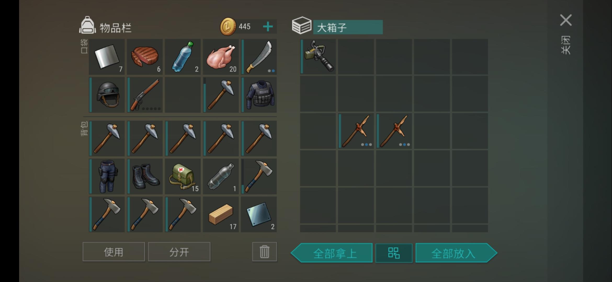 最少需要两把铁斧,两把得多开个箱子。石斧多多益善。