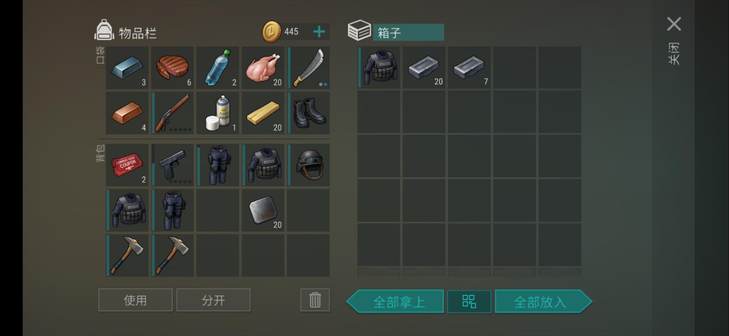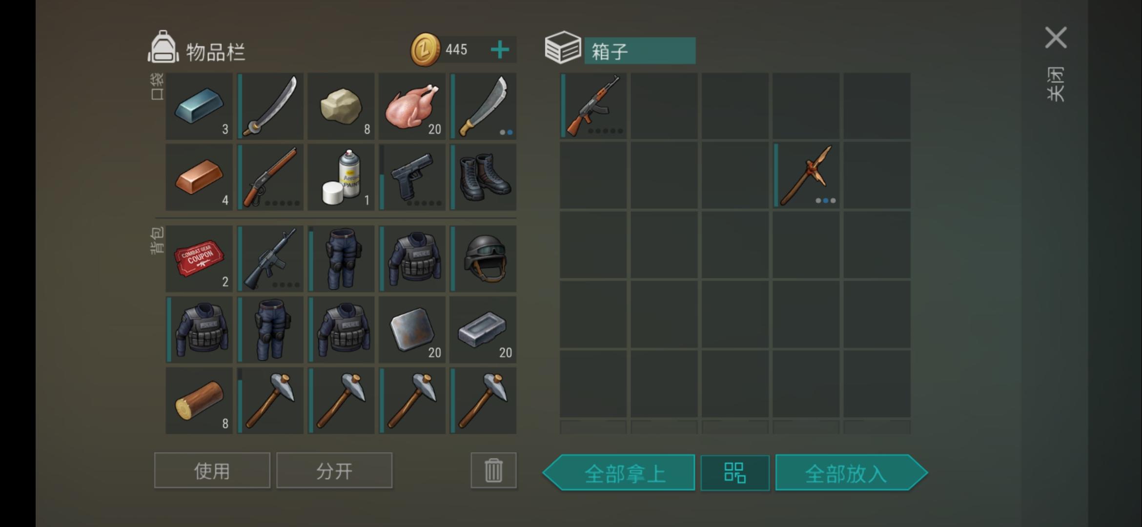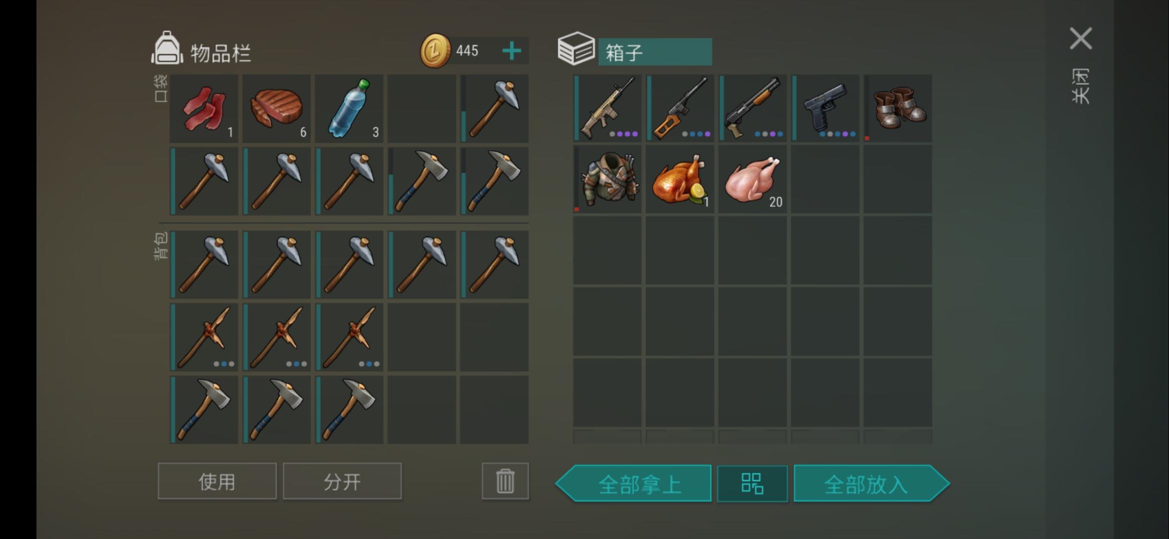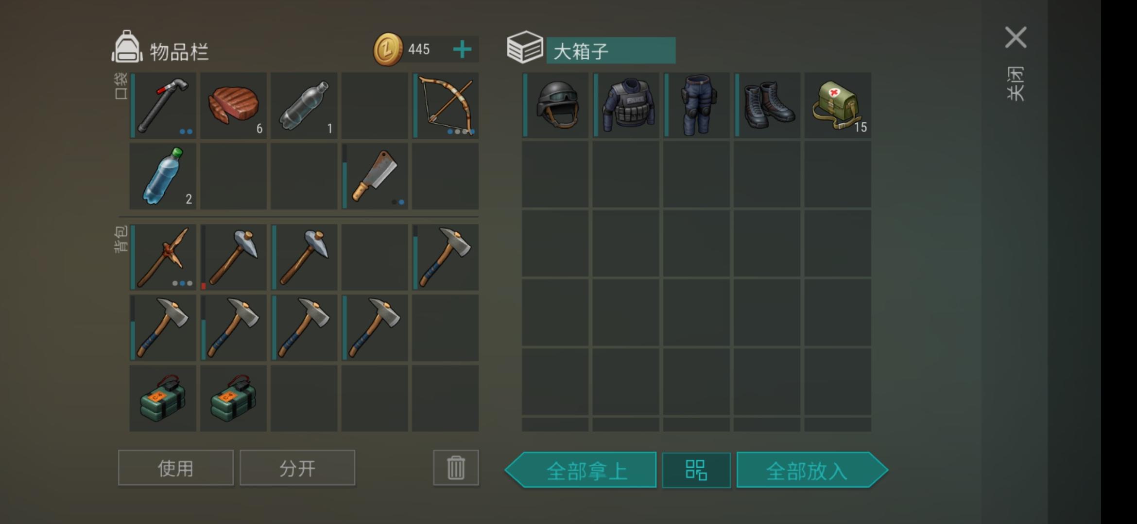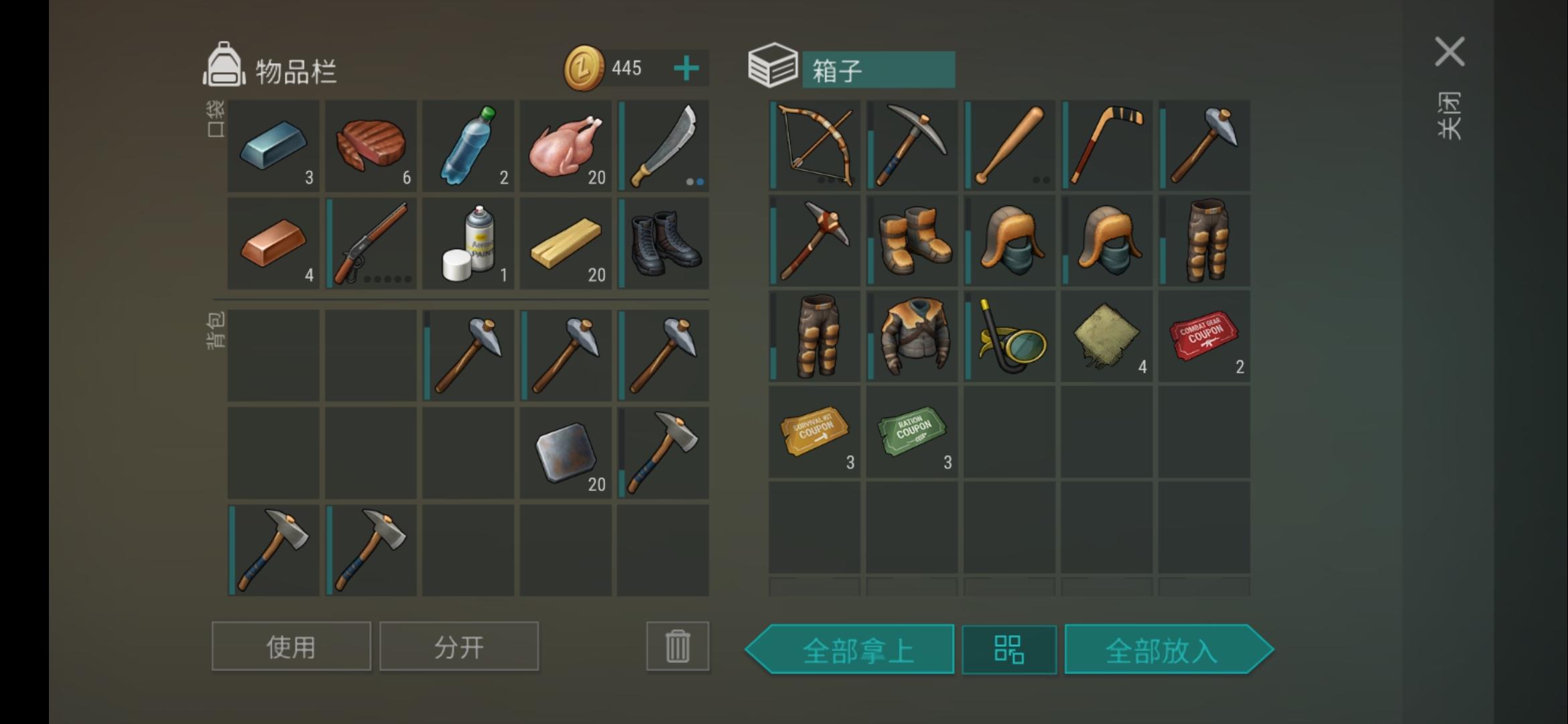 最少需要两把铁斧,两把得多开个箱子。石斧多多益善。