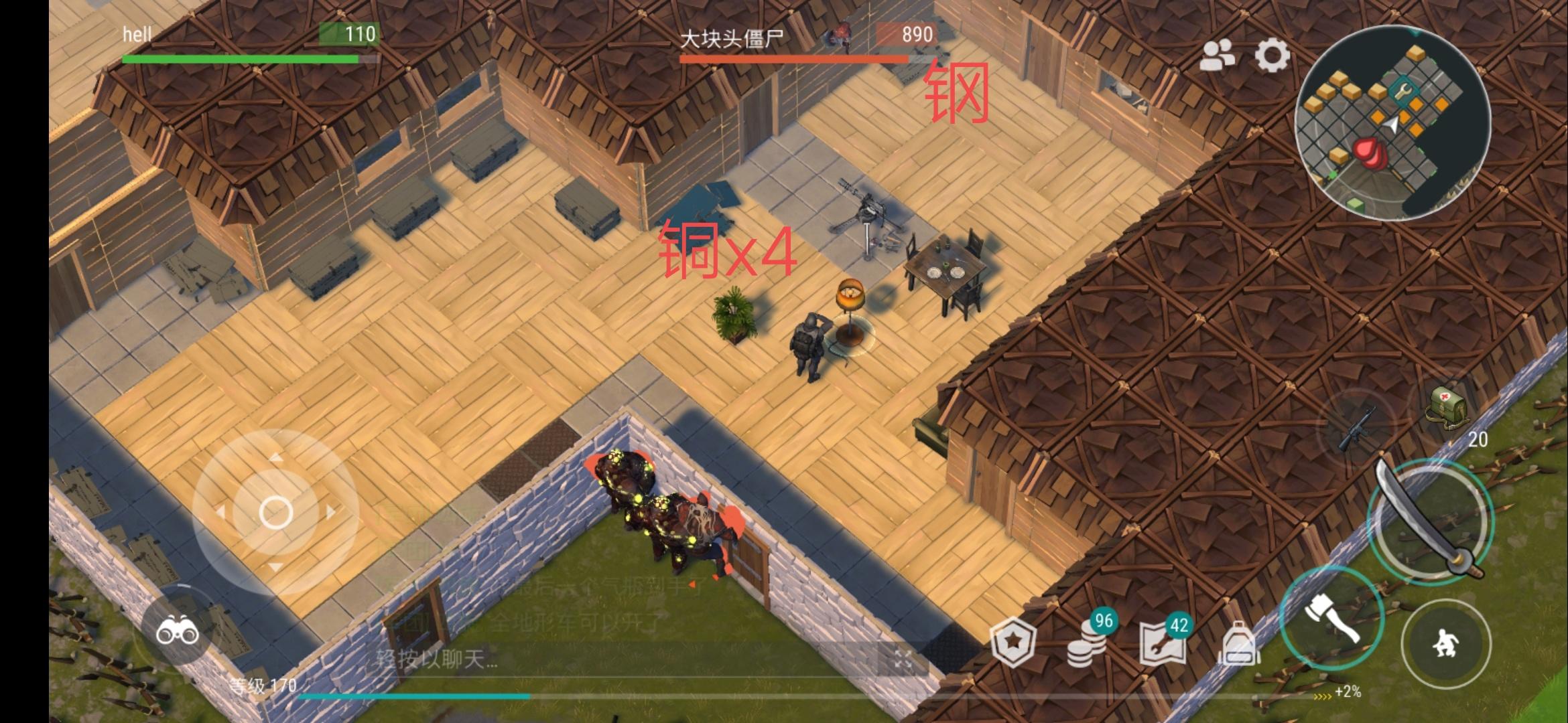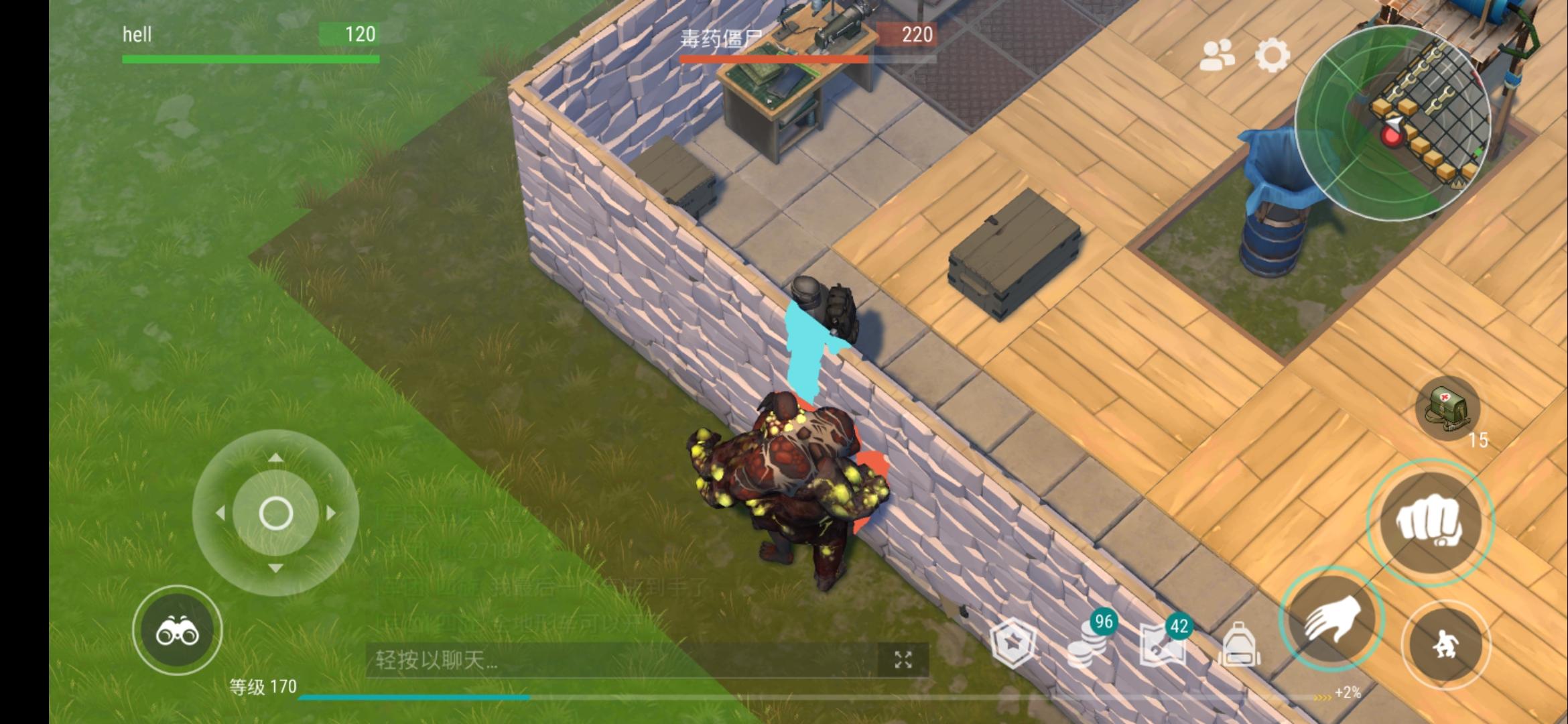 从左边紧挨着石墙的地方砍两堵二级墙进入
