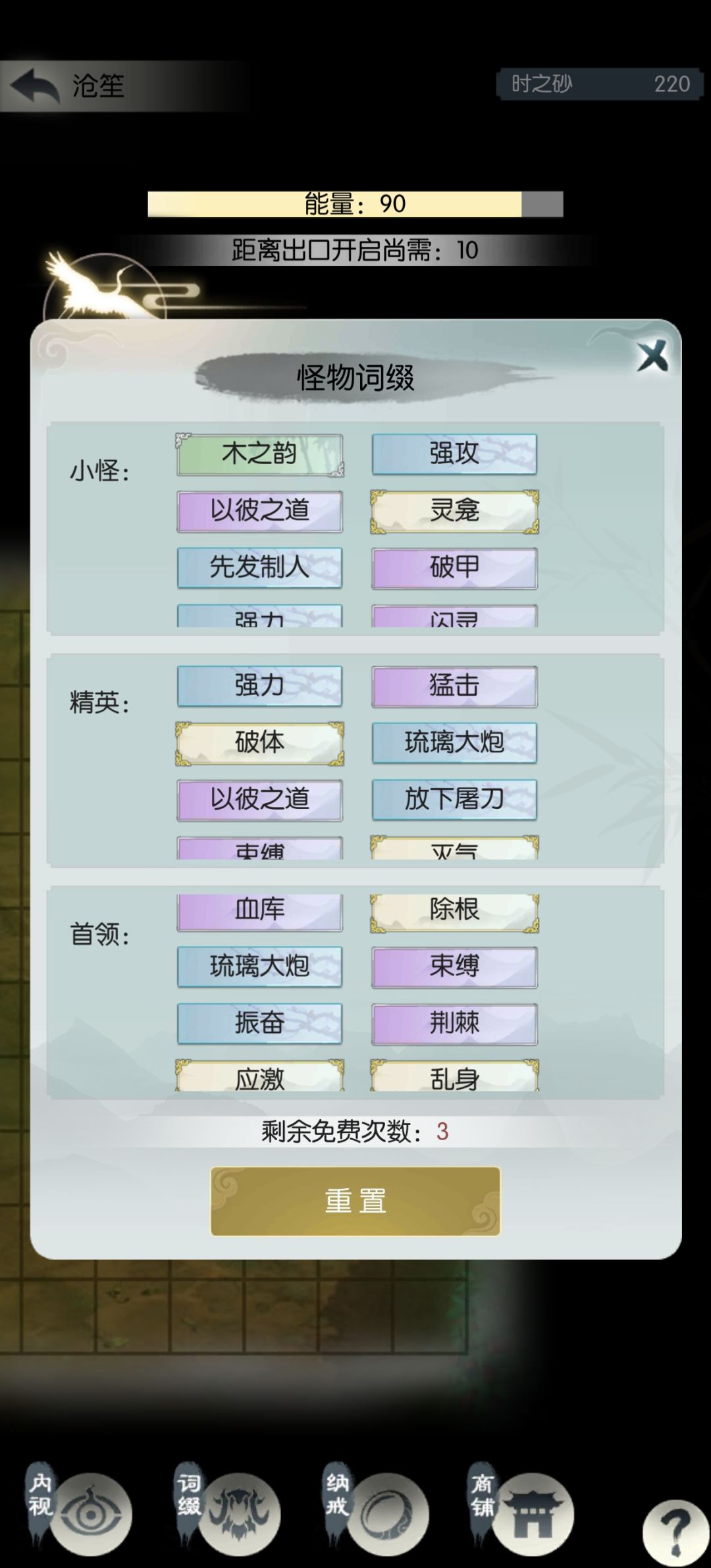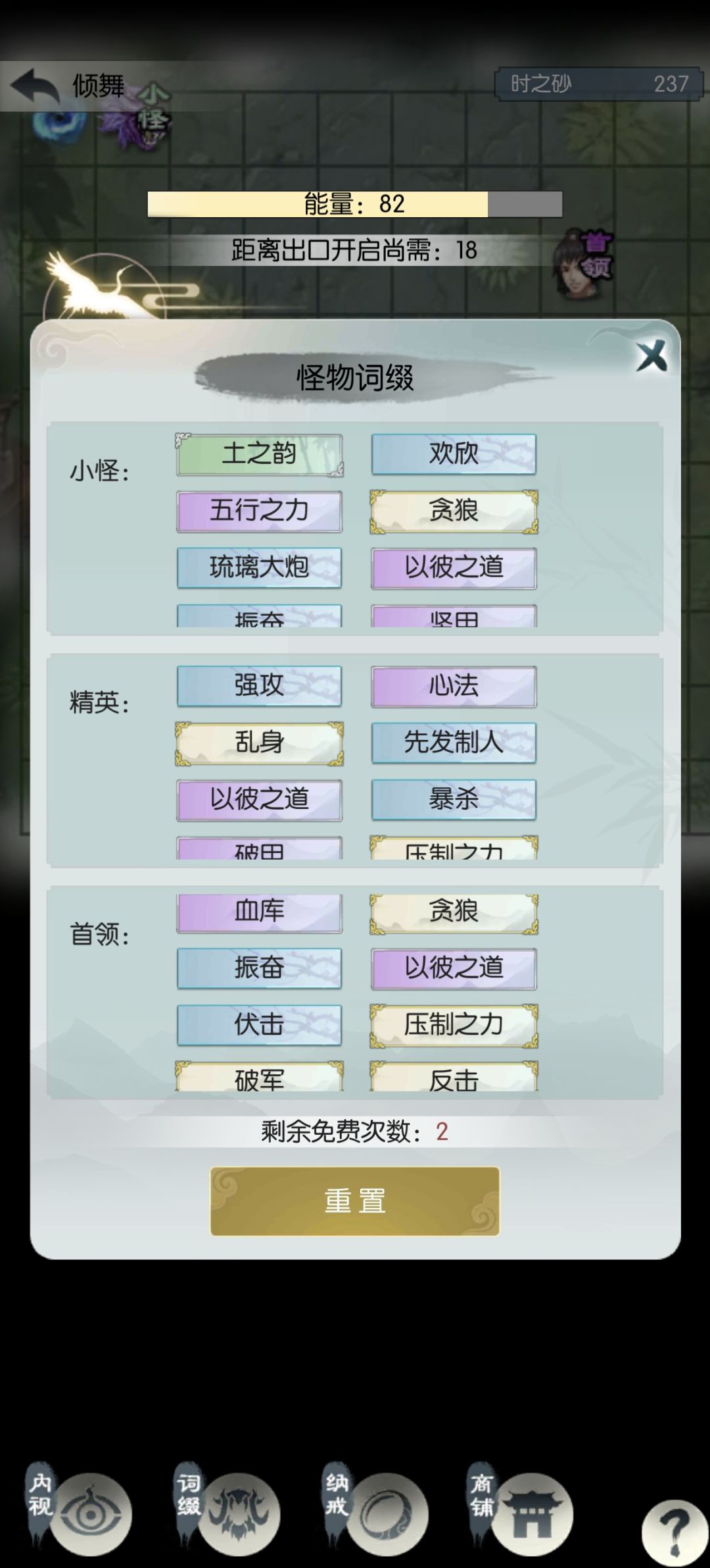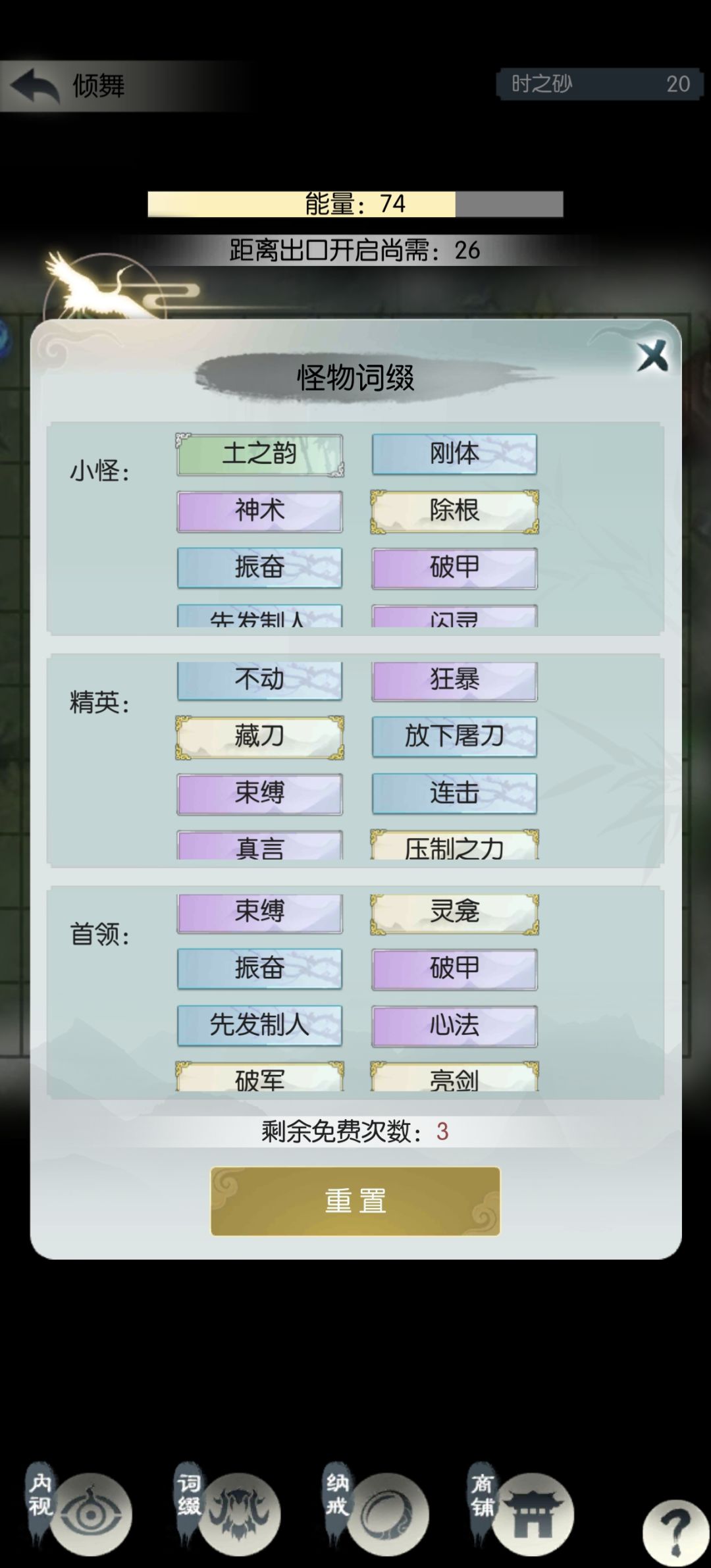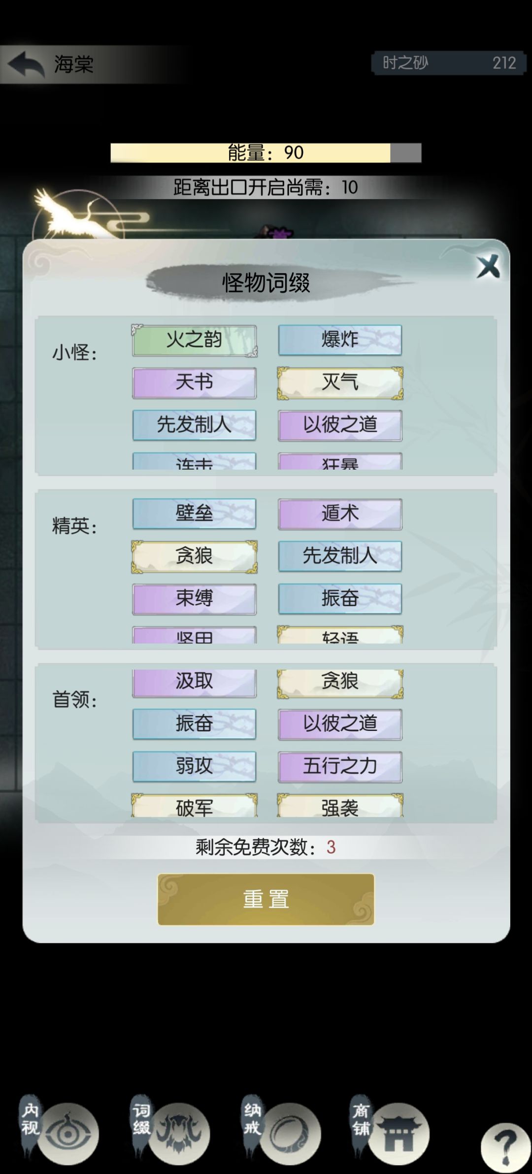 1号还剩两次刷新进度宇⑤,差点命中运气;4号进度源⑨,打第二个首领时翻车,欢欣+除根30回合没打死,三次免费刷新也刚好用完了。明天再堆抗性和属性,后两个号通关问题不大。