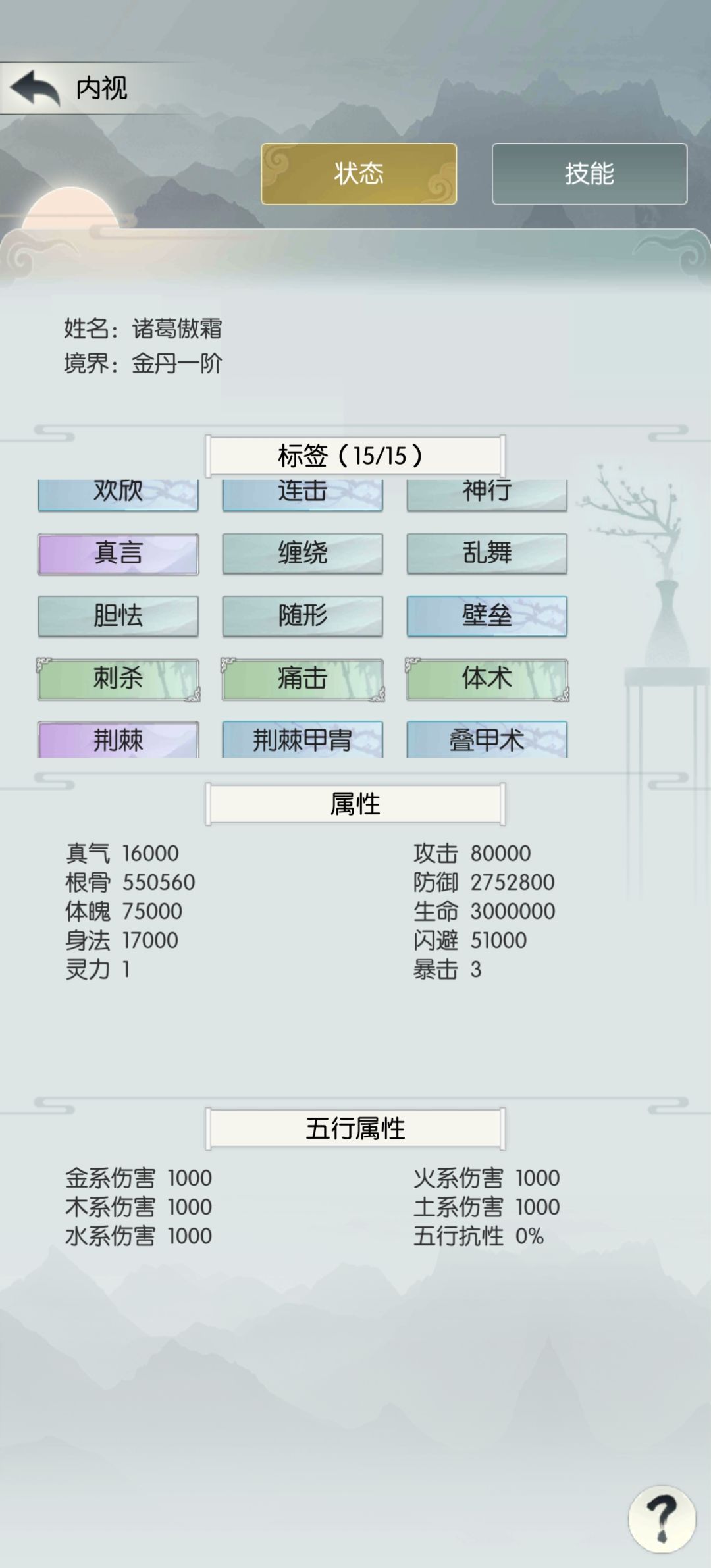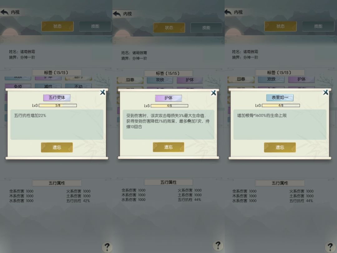 根骨流,主要是减伤、反伤、回血,词条大半升到三级以上: