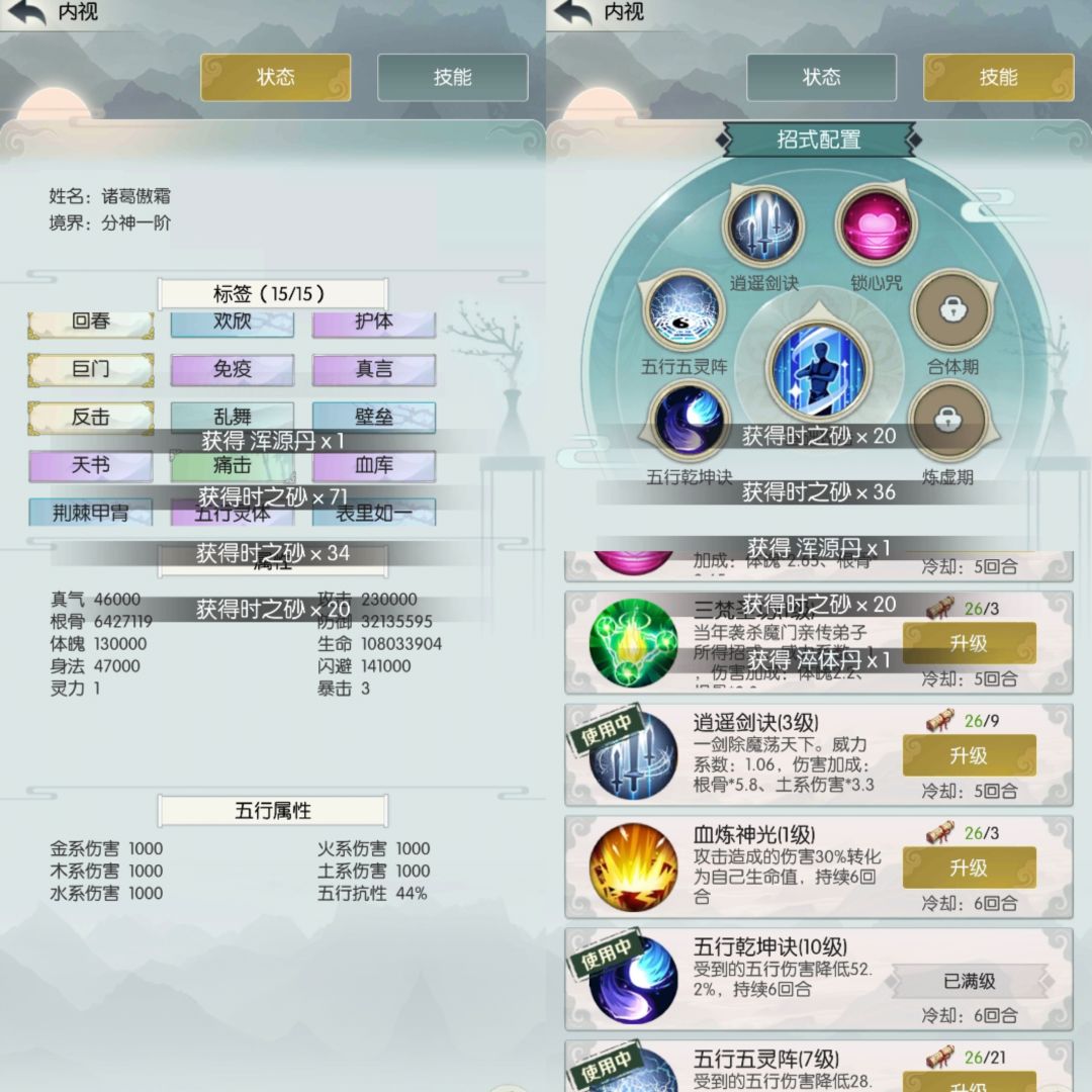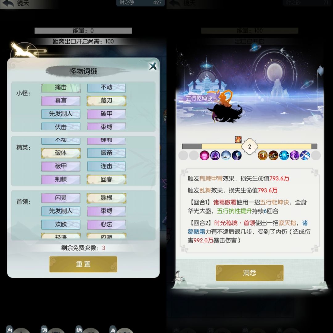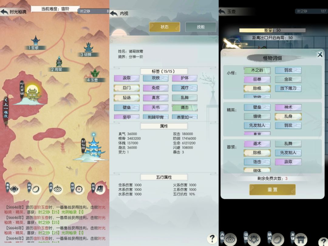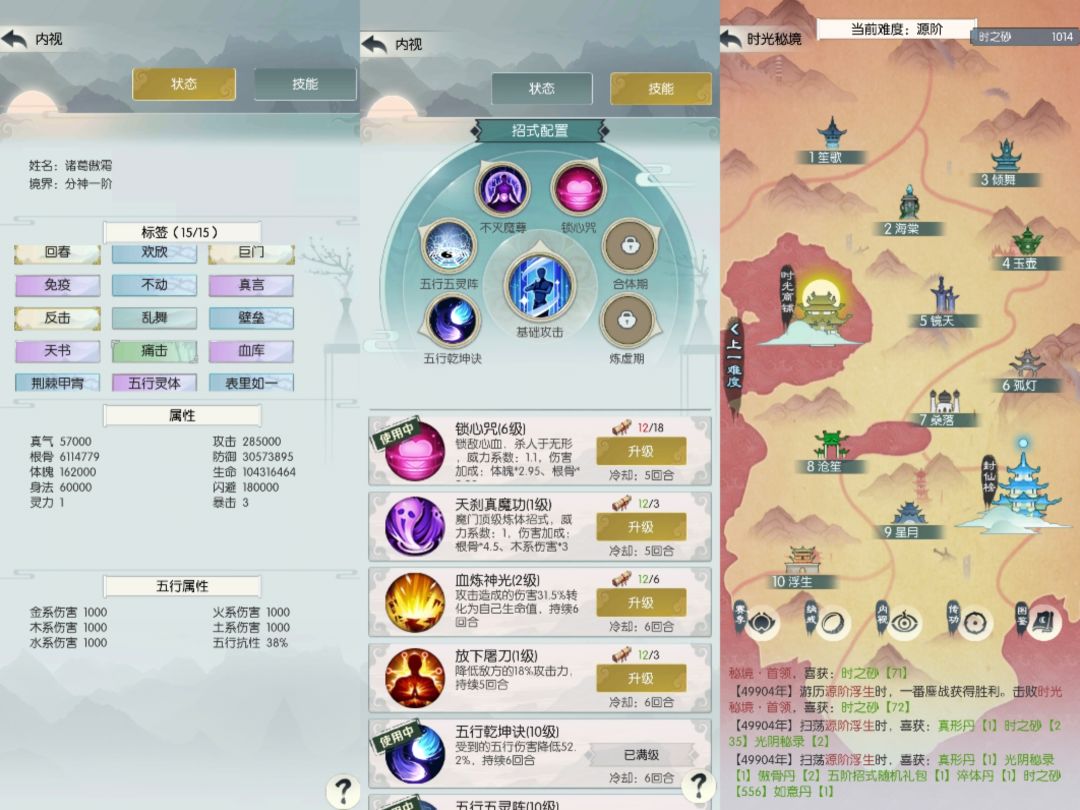 1、3号进度宇③(破军首领);2号进度源⑦(除根首领),480w根骨过的宇③破军,宇⑧(血库+除根)+源③(血库+破军)用掉两次刷新;4号进度还是宙④(除根首领)。