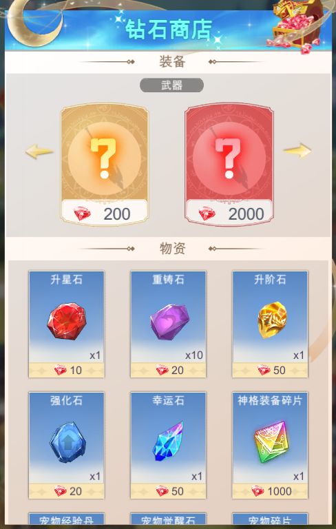 5、新增钻石商城,刷飞艇累直接在商城里面购买吧(点击主城最上方,钻石图标边上的+号打开)