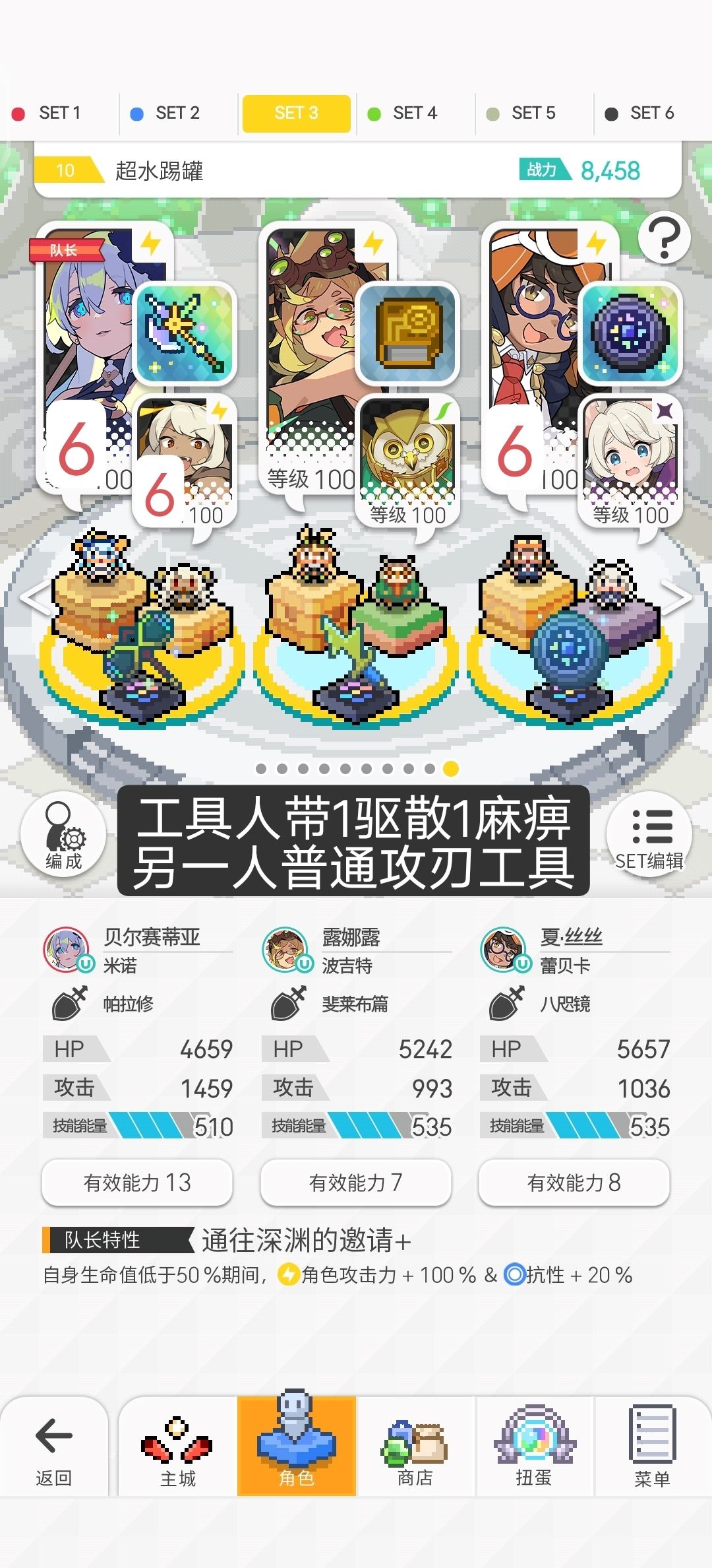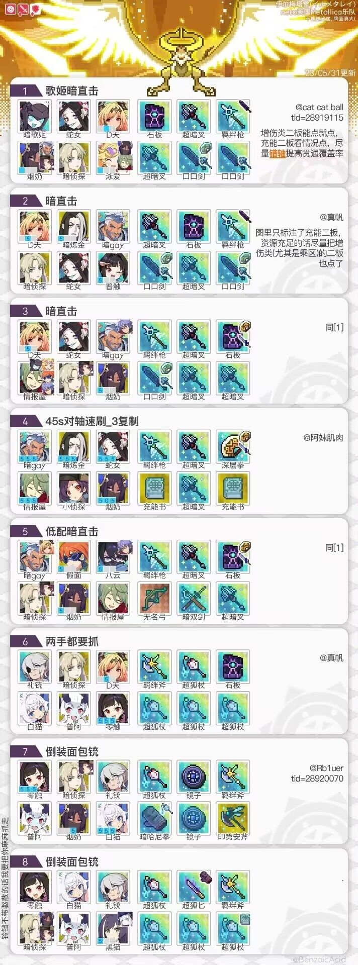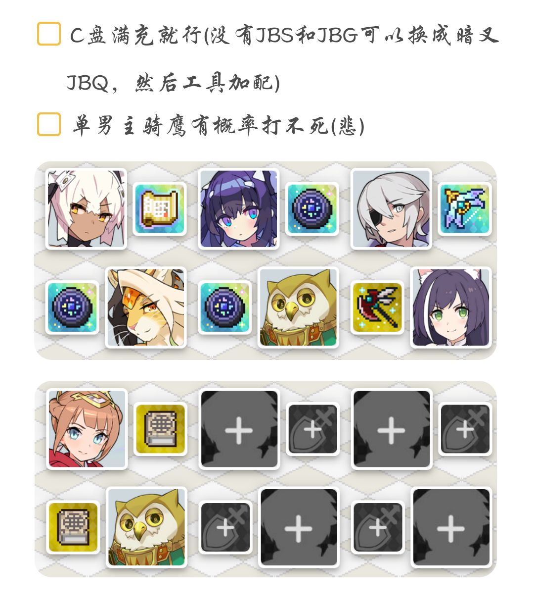 通过刷取高连击完成踢罐的构筑,工具人只需要两个男主sub猫头鹰即可(常规攻刃工具人更稳)
