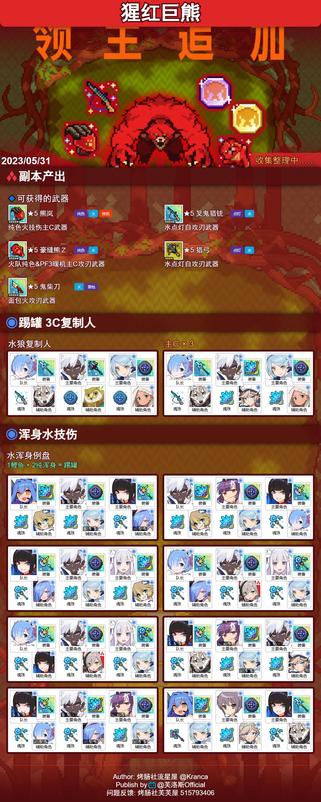 从此往下就是后续陆续实装的新共斗boss,由于血量基本属于很厚的很难踢罐所以更多的放一图流仅供参考,如果不追求速刷可以直接复制游戏内的推荐配队