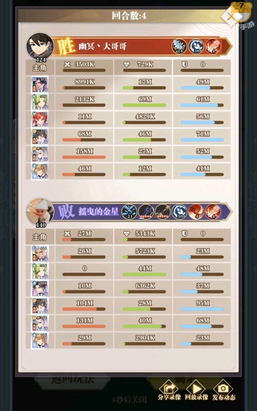 胖子在火队就是小雪的上位替代,所以后期很长一段时间,胖子都还会是火队的顶C,玩火队,想养胖子的可以放心大胆的养,在火队他的爆发和伤害无出其右,前期后期都是,作为二三队的火队扛把子完全没问题,至于其他队的胖子,纯挂件混子,打本凑合,打架不行。最后附上几张战绩图,别问为啥都是输的图,二队强度少个神魂和满级神技,懂的都懂。