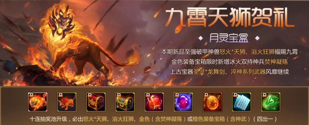 在第九期中,月灵宝盒和月辉宝盒同样继承了月光宝盒第八期和第七期的贺礼,分别是九霄天狮贺礼和无妄战魂贺礼,所以小伙伴们仍然有机会抽取这里强大贺礼哦~