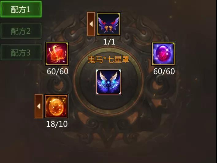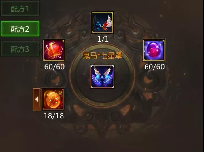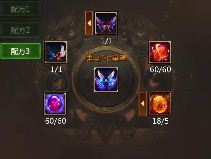 与此同时,我们也同步开放了鬼马*七星罩的合成路径,合成鬼马*七星罩一共有三种配方,已经拥有鬼马神迹或者华胥幻梦羽的小伙伴可以根据自己的情况选择一个配方来合成鬼马*七星罩。