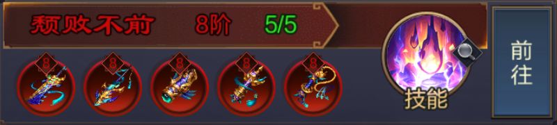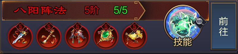 技能介绍:我方武将首次释放战意技能时,发动八阳阵法,8秒内敌方所有武将每次造成伤害,其自身会受到本次伤害9.6%的反弹伤害,最大不超过该单位最大攻击力280%。
