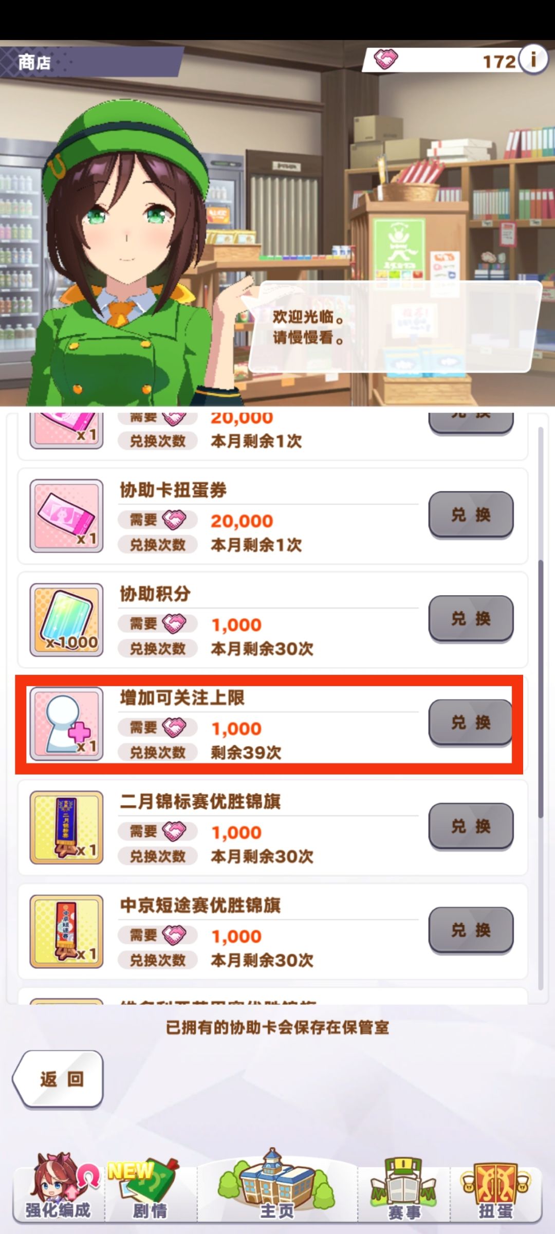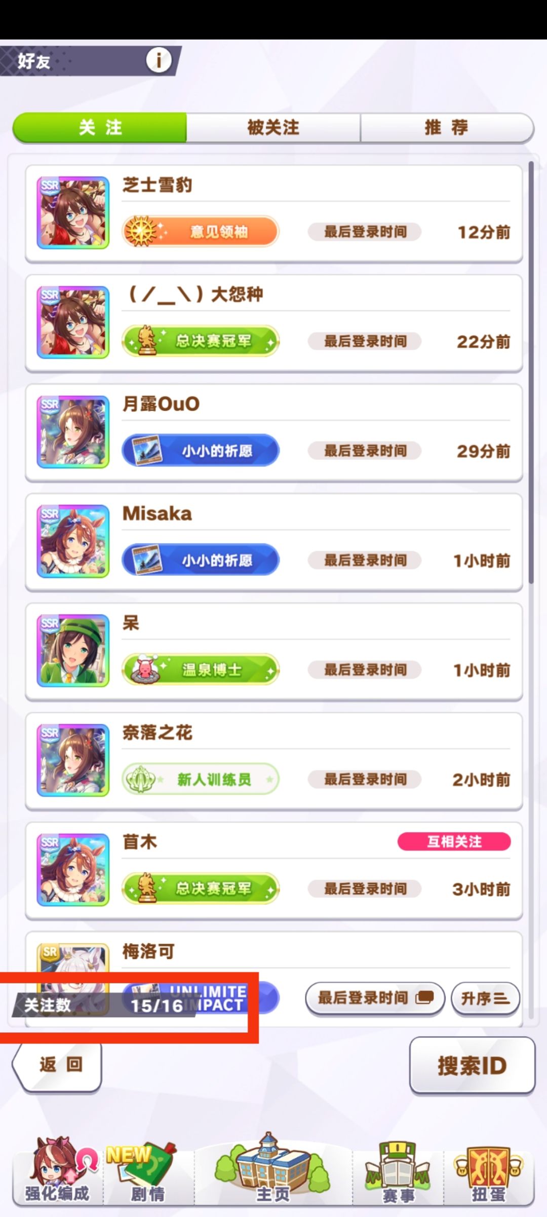 一个玩家可以被关注1000次,而自己的初始可关注数只有15。可以在好友页面下方查询已关注数量,在商店可以用友情点换取关注数