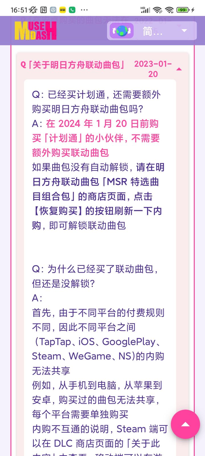 如果曲包没有自动解锁,请在明日方舟联动曲包「MSR 特选曲目组合包」的商店页面,点击【恢复购买】的按钮刷新一下内购,即可解锁联动曲包
