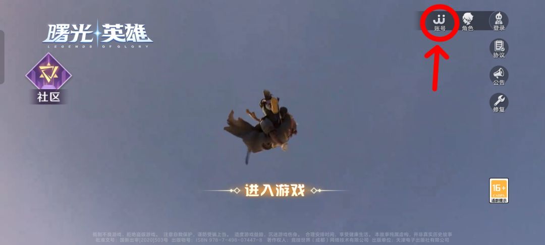 1️⃣打开游戏,点击登录界面右上角【登录】