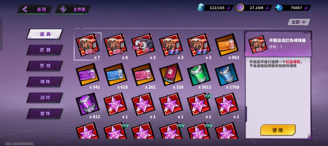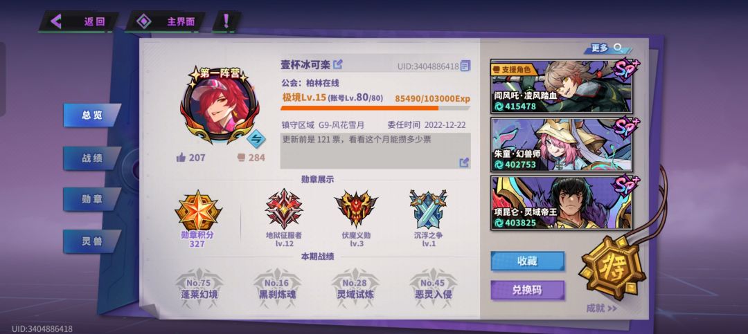 这个是大号,项昆仑池子三种券几乎都抽干,雪王更新前留了 121 张灵将,武器灵技大概 100 左右吧,这个版本还剩 3 天,差不多也就多攒个 25 票,估算下这个版本大概攒了 392 灵将+250 武器和 280 灵技.