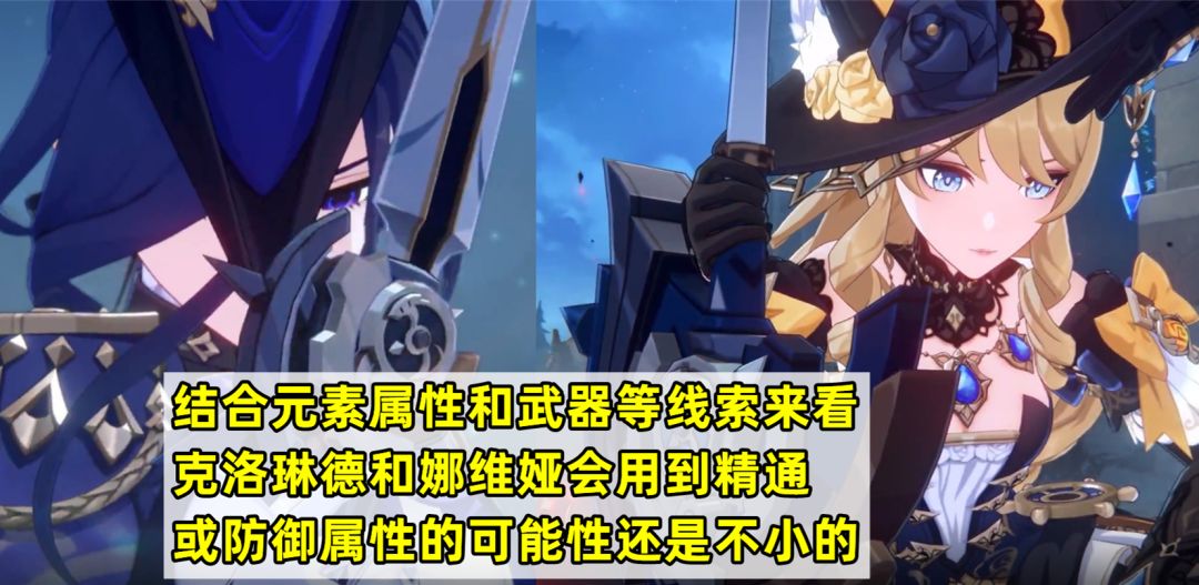 虽说过场动画里带的武器不一定在实战中和角色契合,不过考虑到克洛琳德是雷系,而娜维娅是岩系,她俩需要精通和防御属性的可能性还是不小的。尤其是精通主词条,本来出率就是最低的那档,留着最好,就算克洛琳德用不上别的角色也有机会用上。